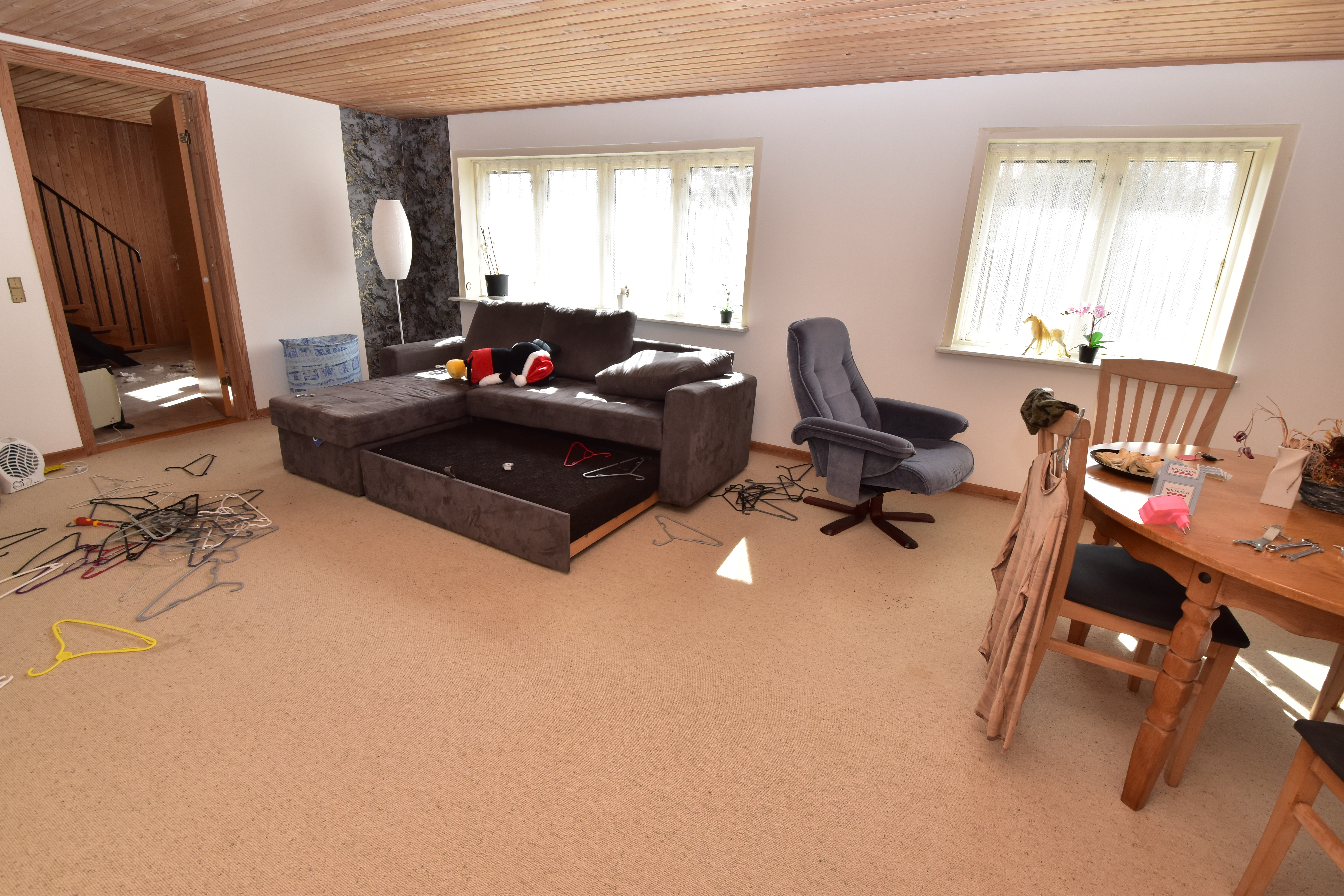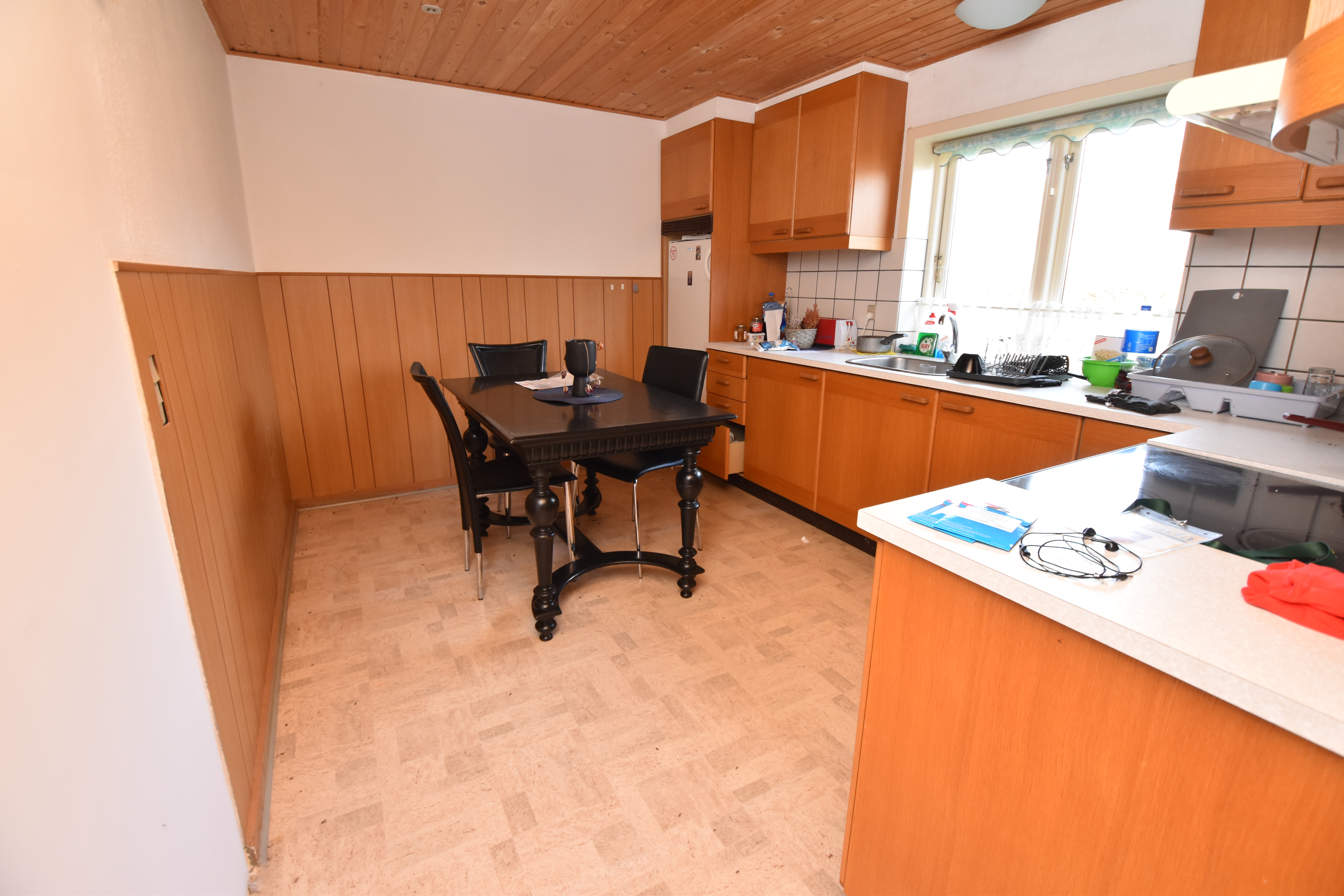 Det første der møder dig er en lys og venlig entre som giver dig adgang til køkken/stor stue og teknikrum.I forlængelse af stuen er der et værelse.