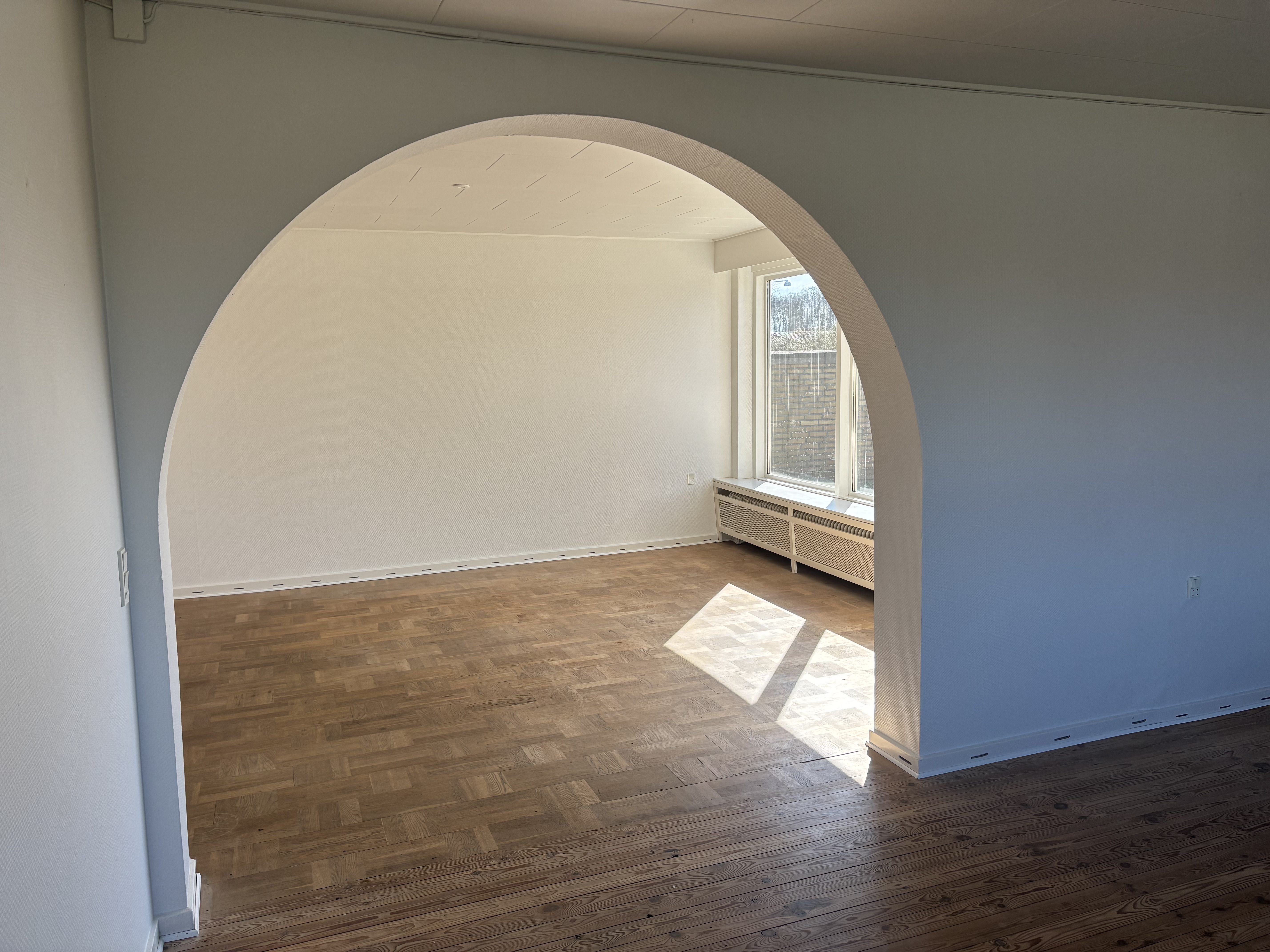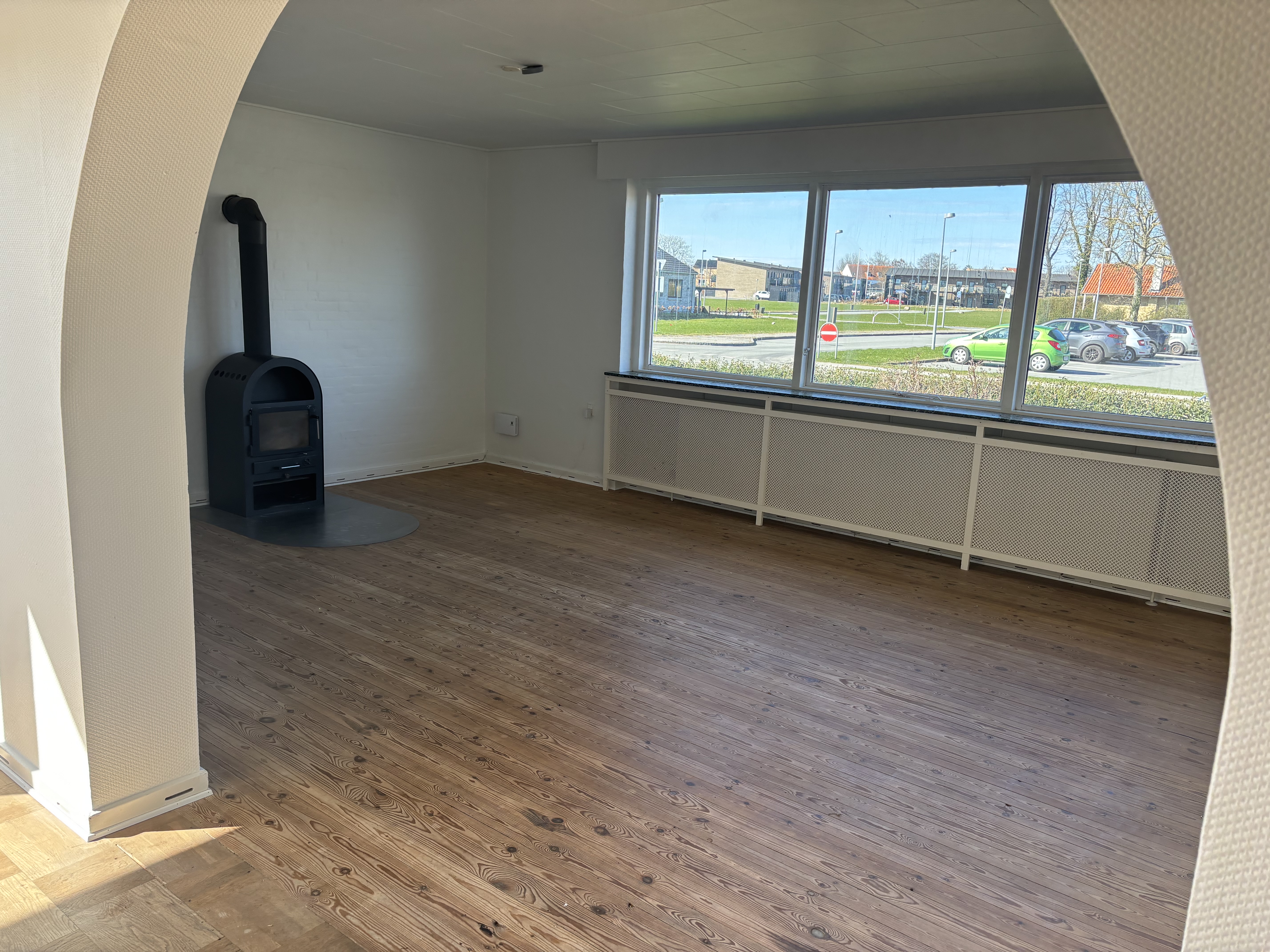 Indeholder 2 sammenhængende stuer, køkken, 2 badeværelser samt 3½ værelser i stueplan.