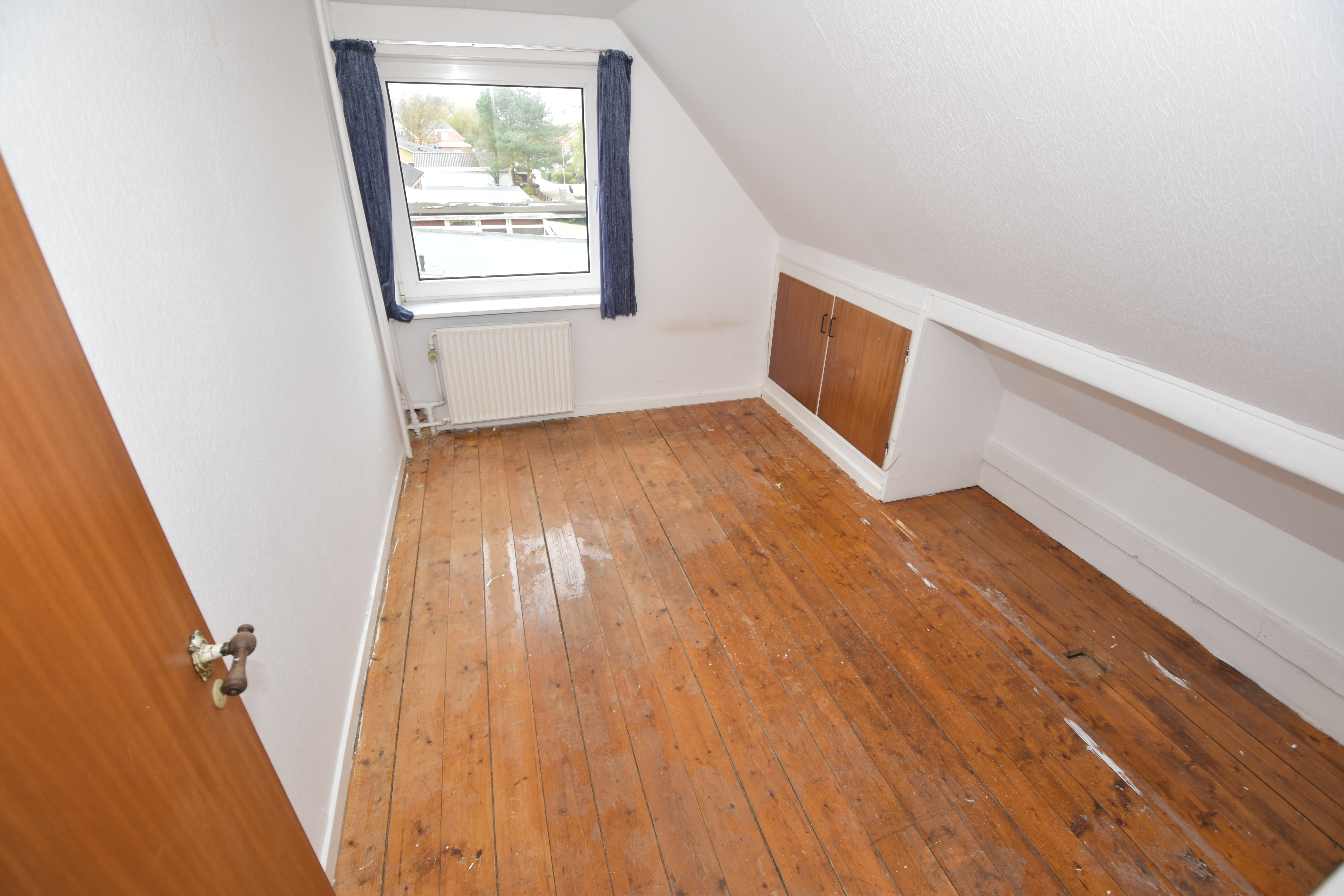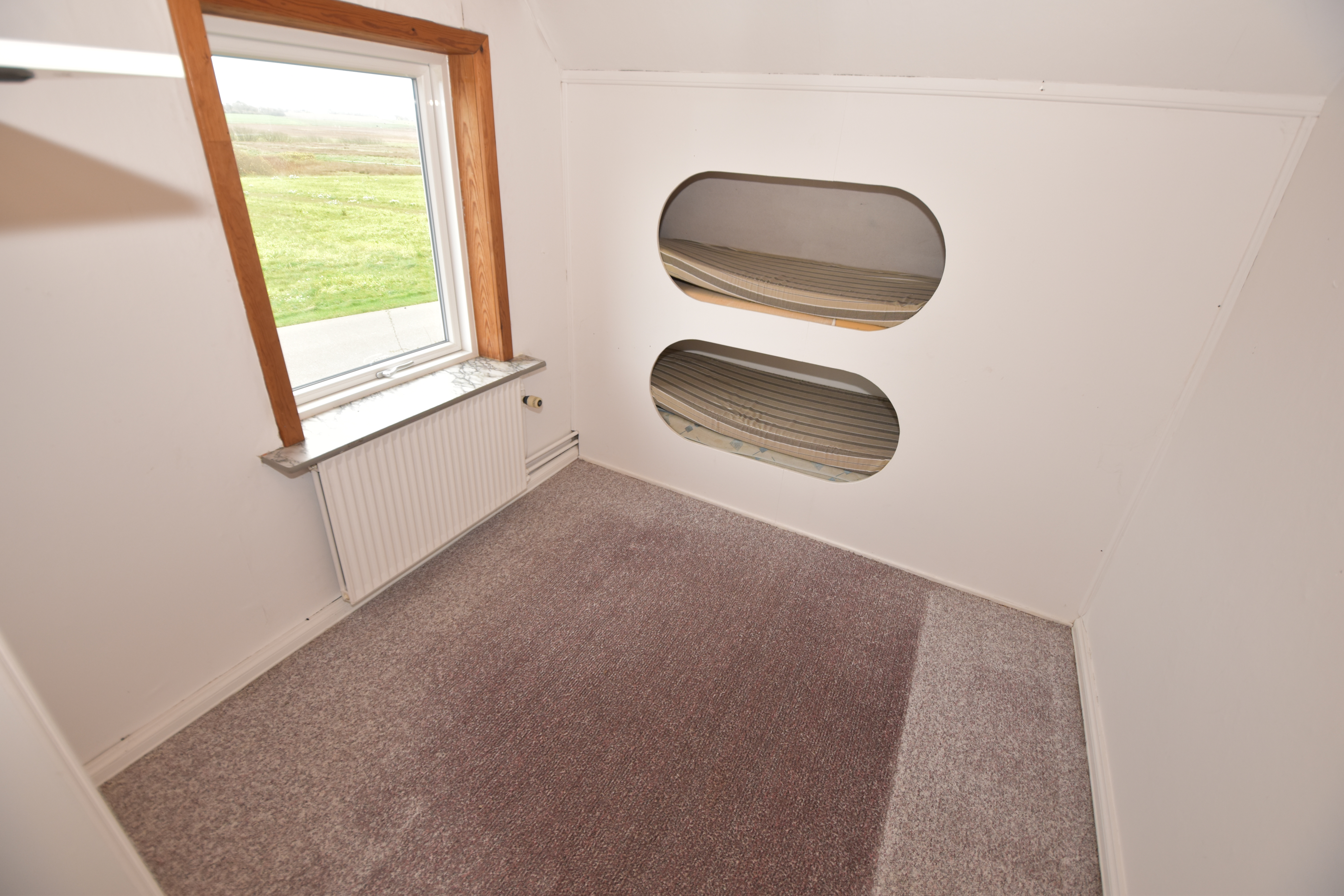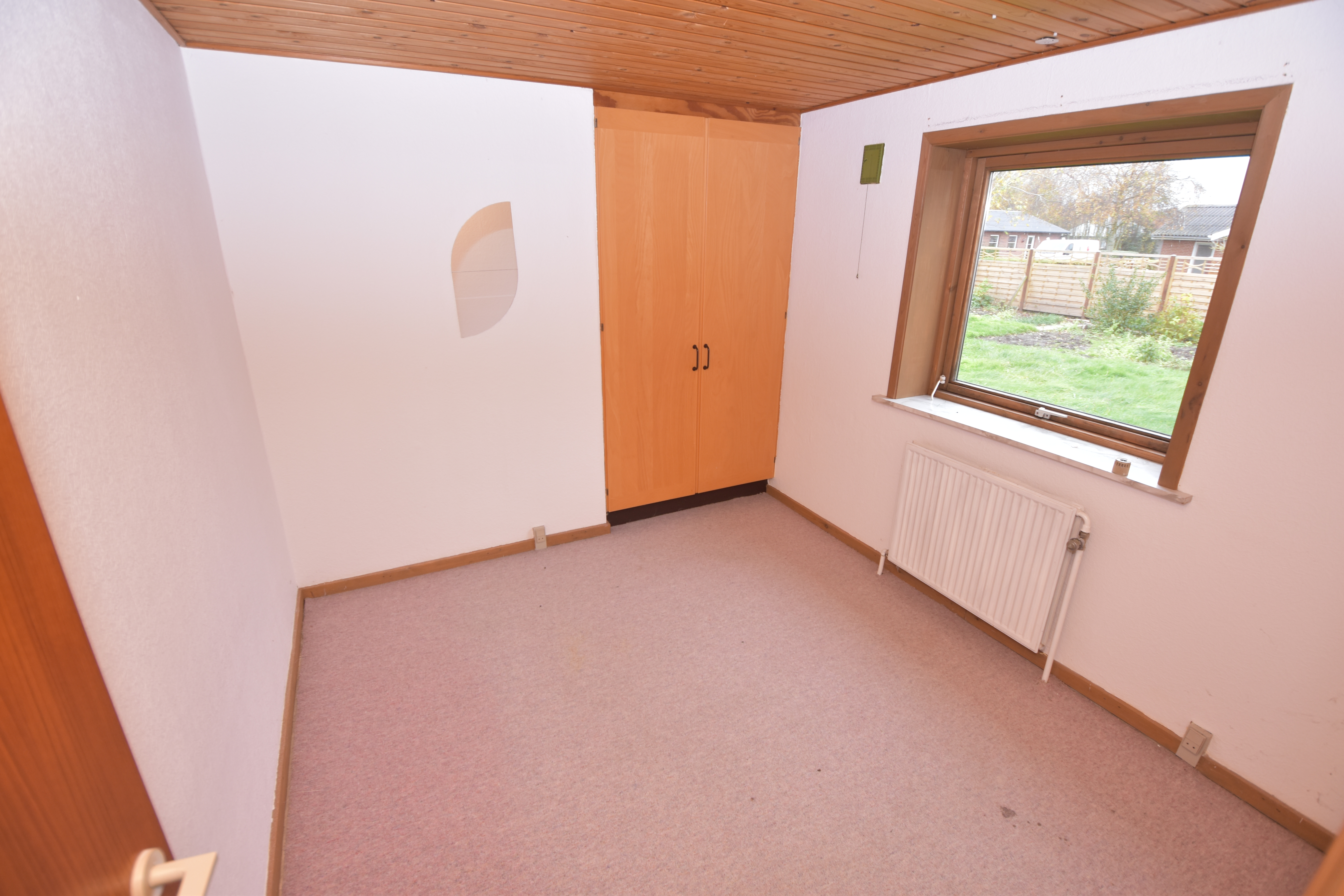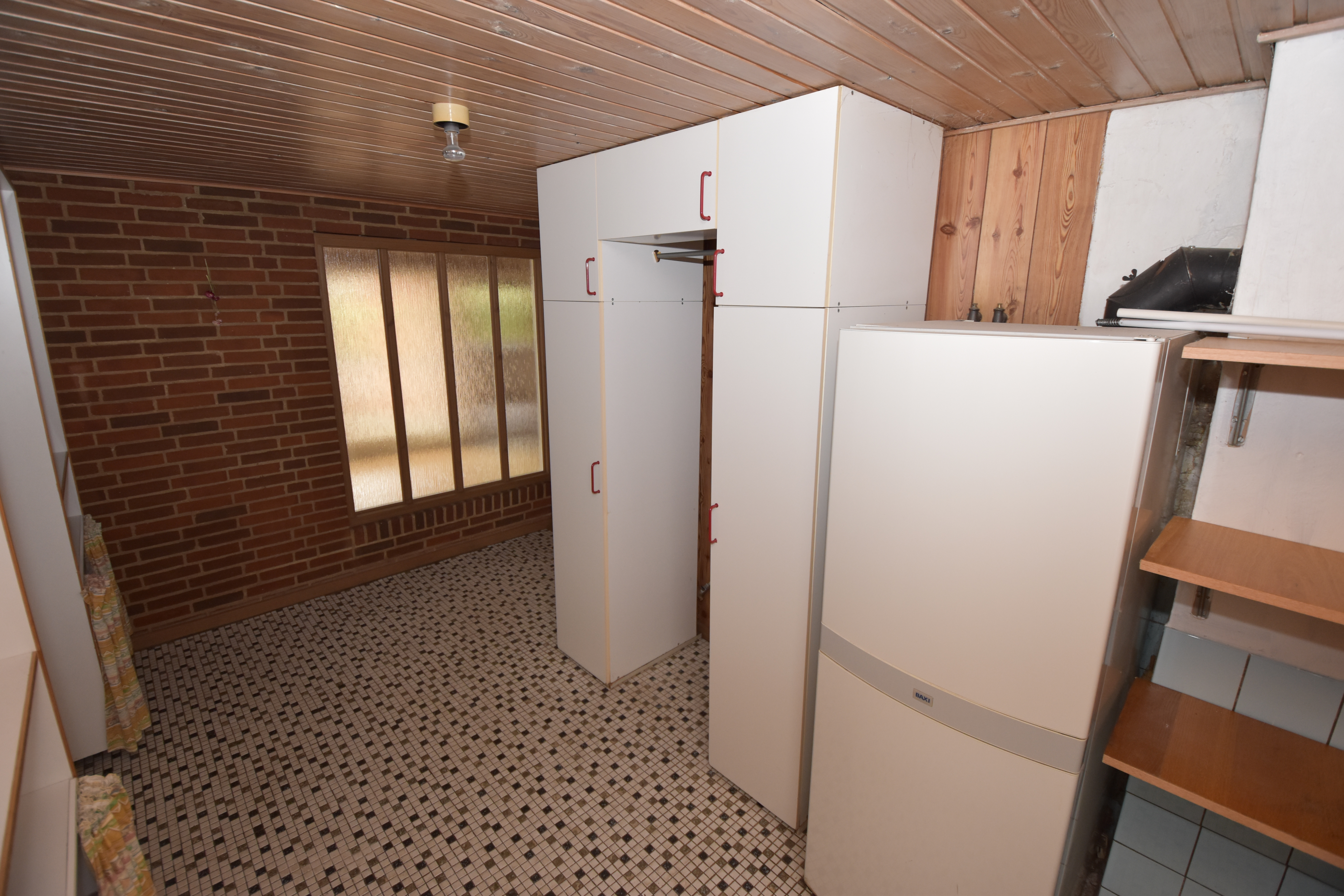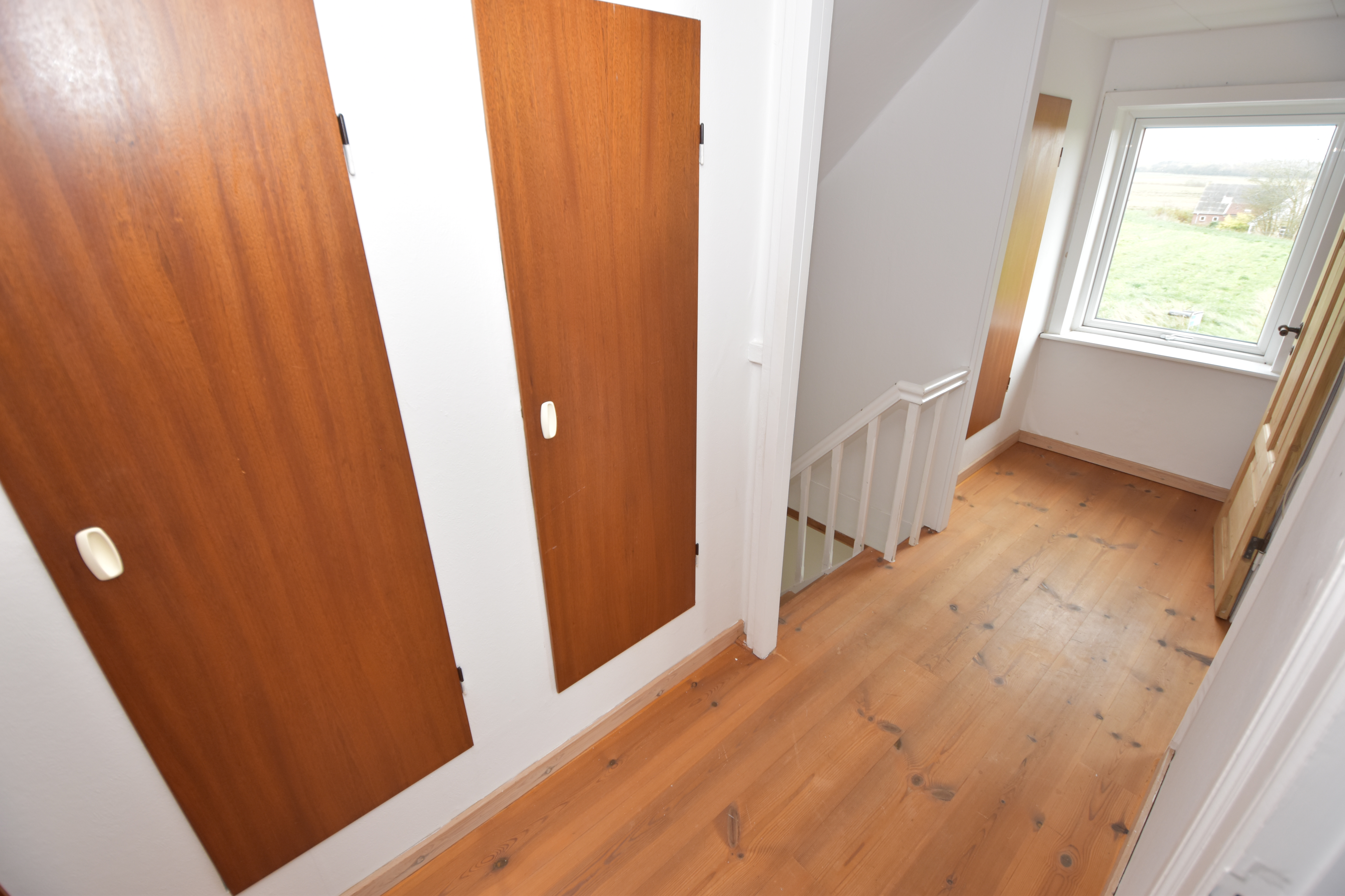 Derudover er der også fra køkkenet adgang til en mindre gang med trappe til første sal.I baghaven findes også et ældre skur.