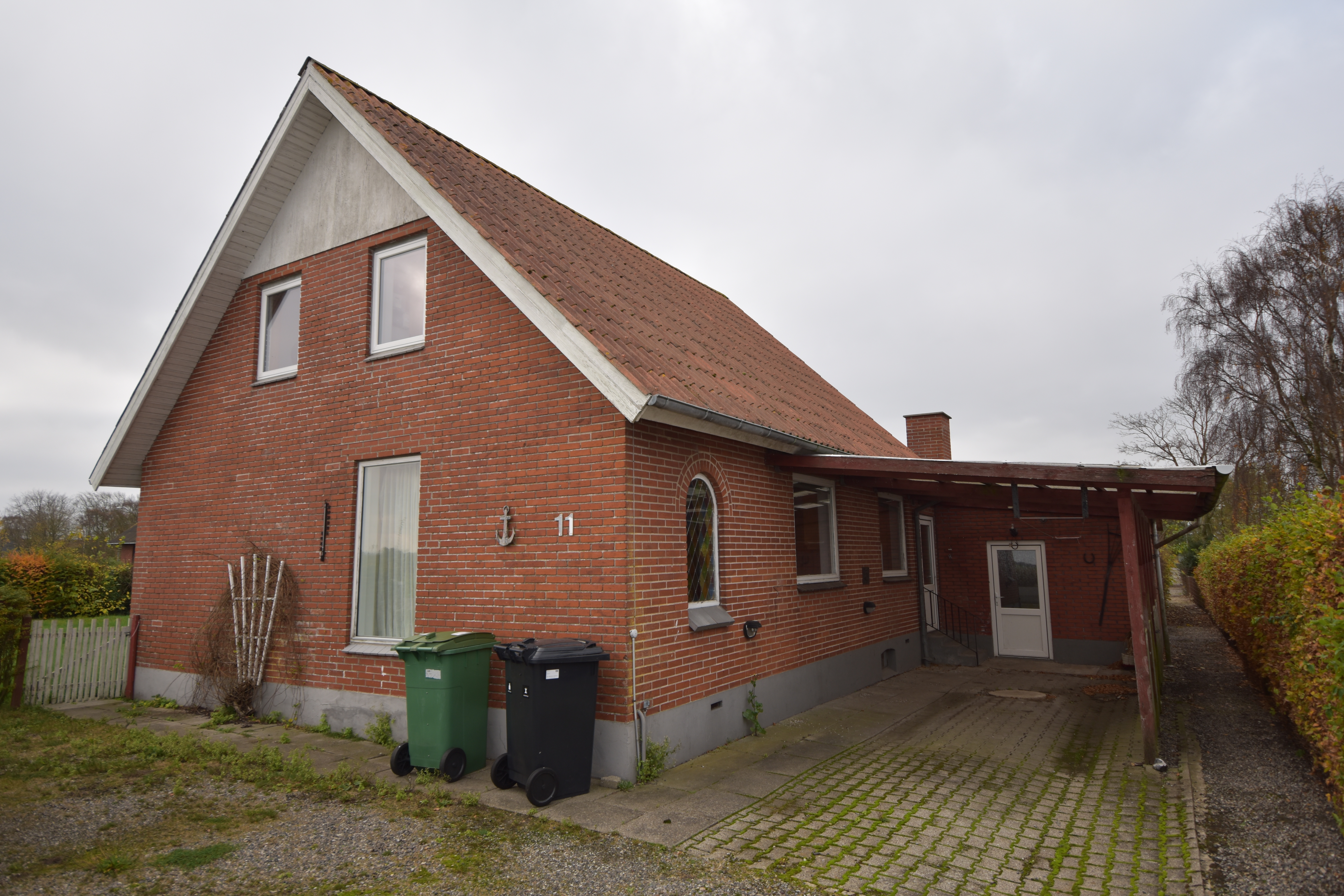 Ejendommen er med udnyttet tagetage med 3 værelser + bad/toilet.Der er tilhørende have. På husets ene side er der en overdækket carport. I forlængelse af carporten er der et værksted