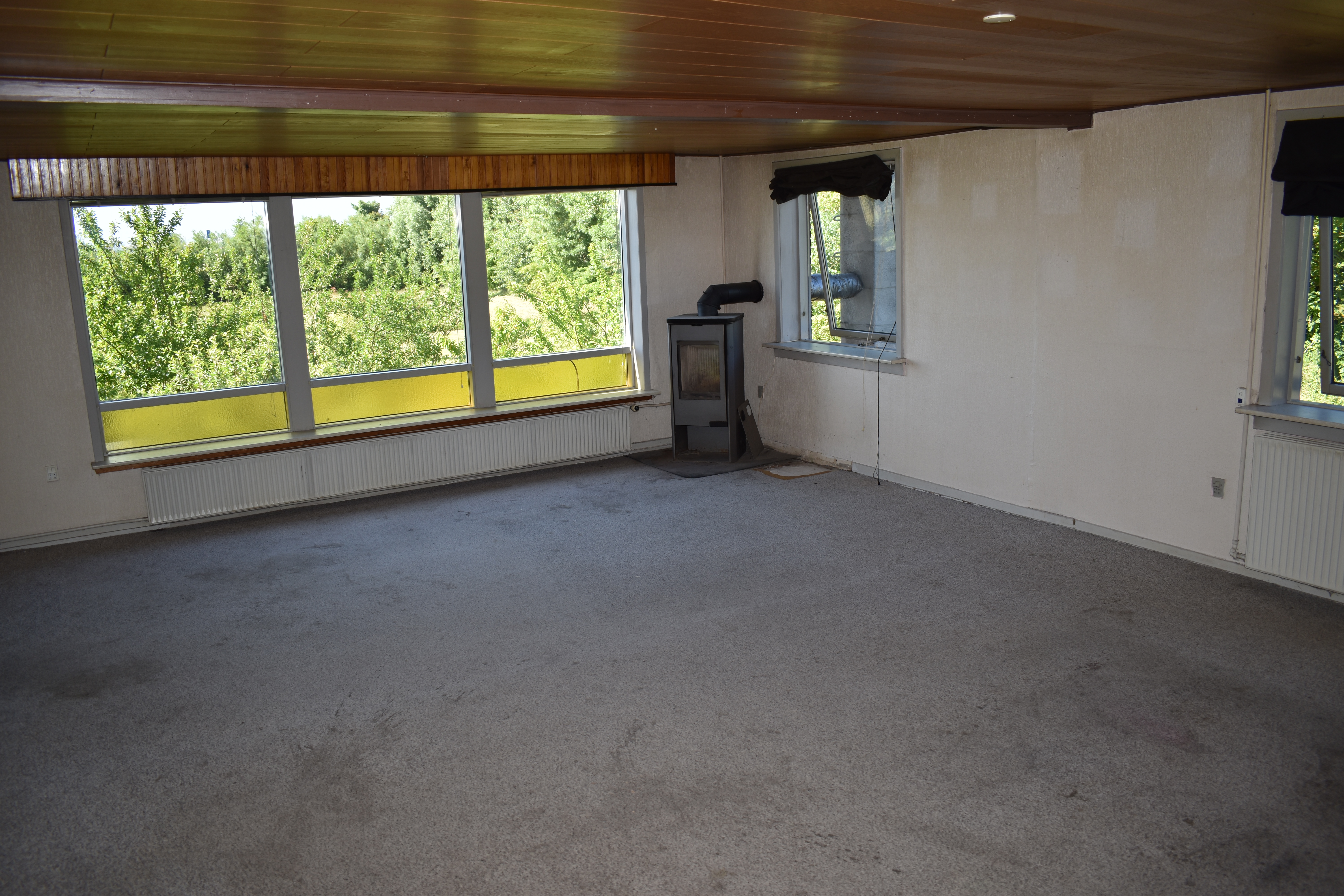 På 1. salen er der to værelser i gavlen, badeværelse med badekar, større værelse og til sidst en stor stue med udgang til lukket altan, hvor der også er en rigtig god udsigt.