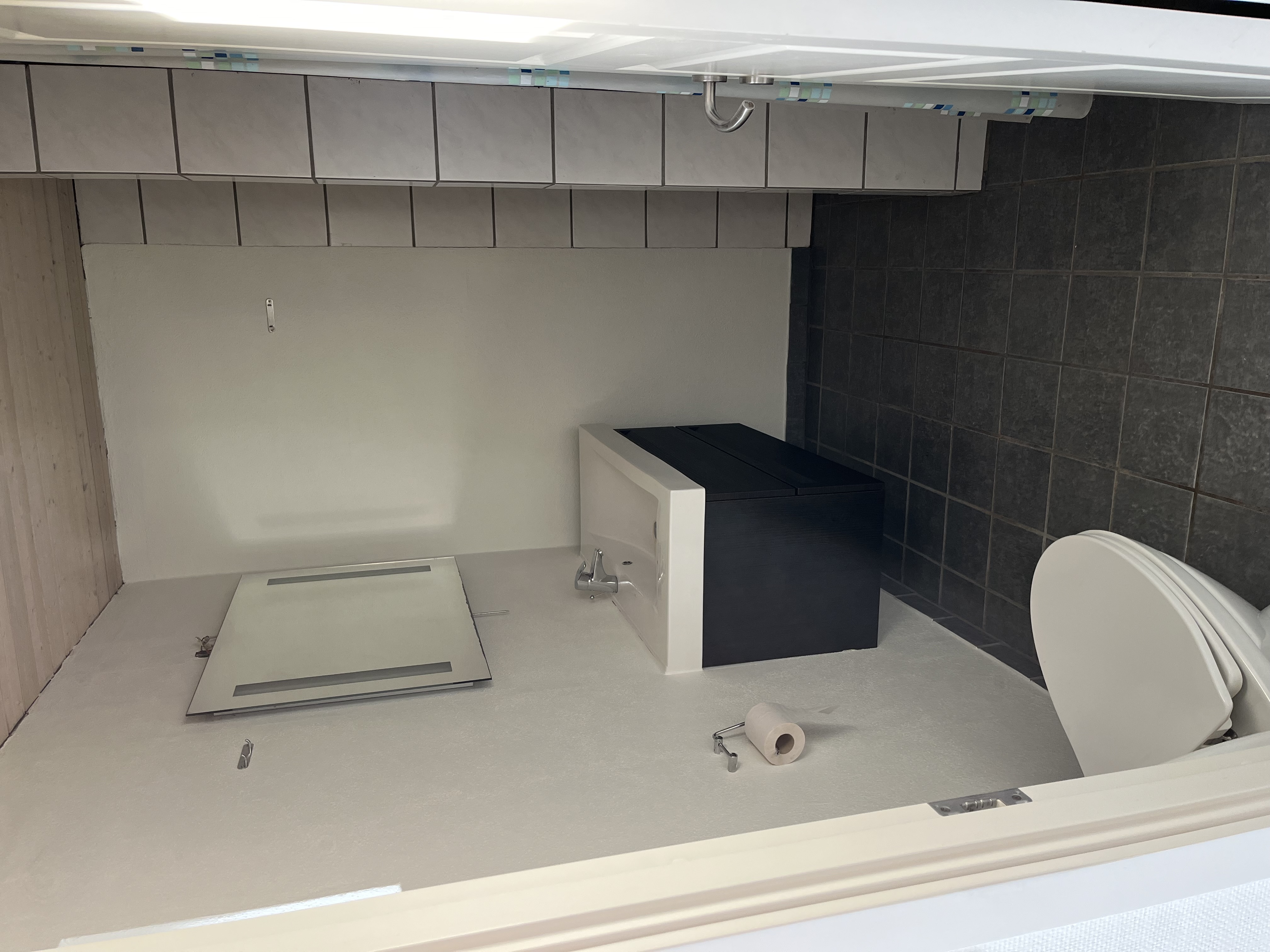 Huset har en gang/bryggers 1 værelse, bad, køkken/stue i et