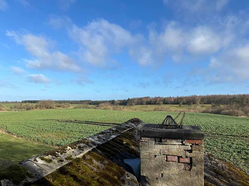 Tilhørende huset er der indkørsel, have og gode udearealer. Udsigten fra huset er helt fantastisk, hvor man kan se skov, marker og vand.