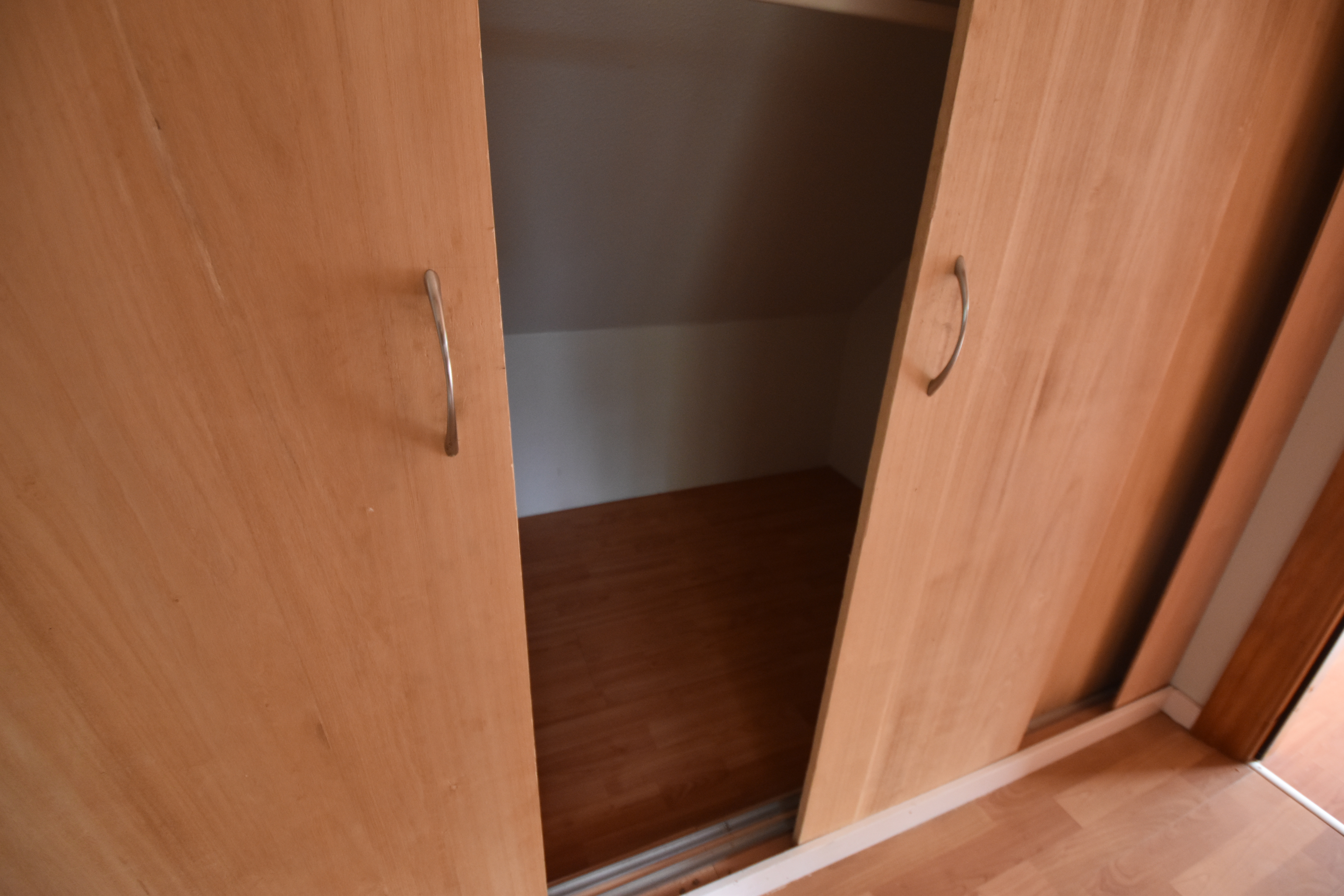 Superbrugsen ligger "en spytklat" fra huset. Ejendommen er på 95 m2 og der er 2 værelser på 1. sal