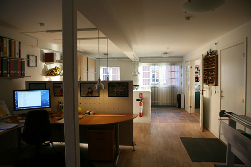 Indretning: Fra gaden går man ind i en hall. Hvor der er adgang til 3 forskellige lejemål, samt der er adgang til fælles wc. Fra hall er indgangen til kontorlokale med vinduer mod nord, der gør lokalet velegnet til EDB skærme. Fra kontor er der lille fransk altan mod øst samt der er adgang til kontor / møderum med vinduer mod syd og øst. Fra kontorlokale er der adgang til køkken med spiseplads samt vindue mod nord. Fra køkkenet er der adgang til kontor / lagerplads med vindue mod nord. Fra dette rum er der adgang til pænt badeværelse med bruser rum.