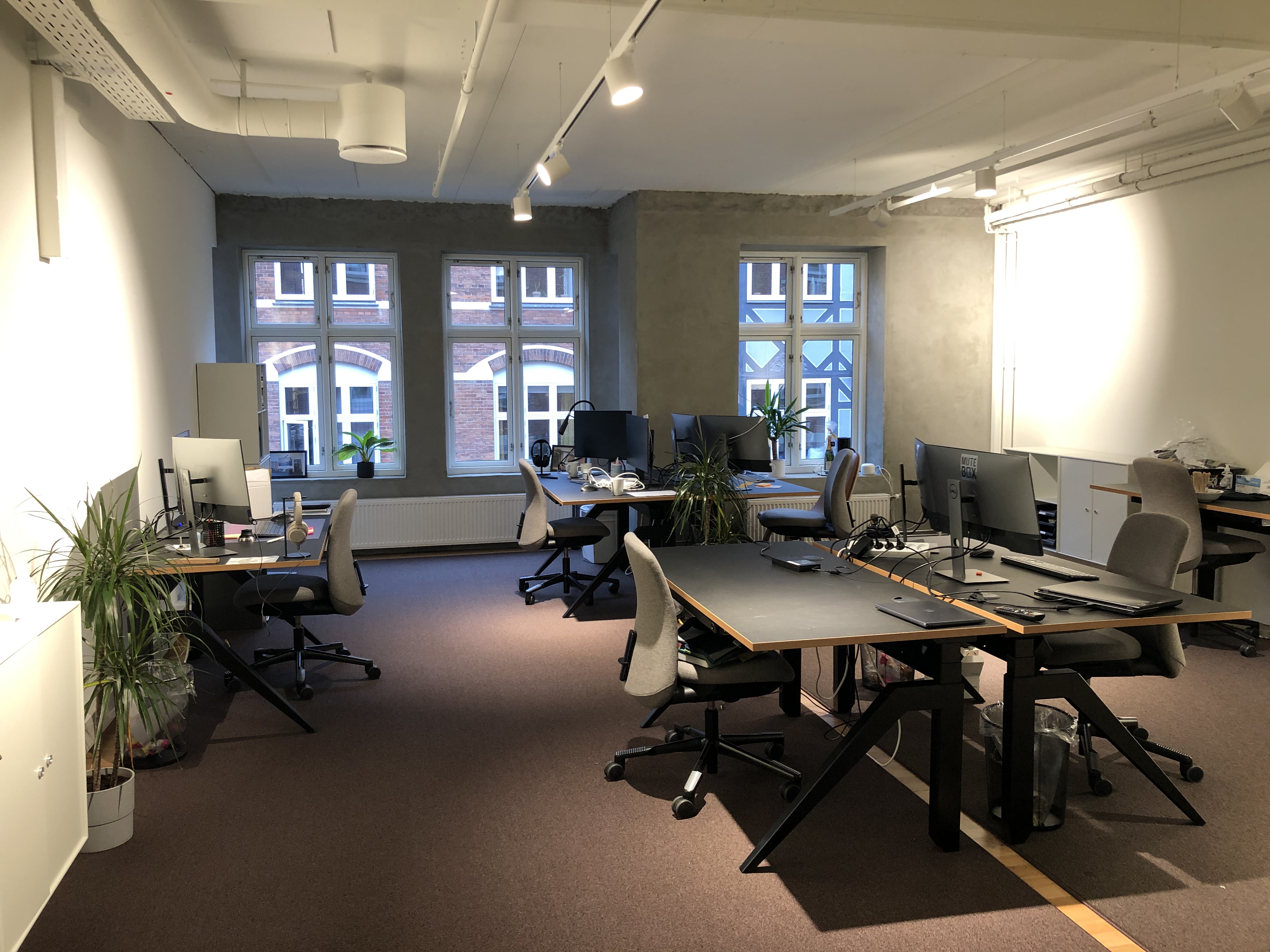 Alle kontorer udlejes møblerede med hæve/sænke borde, kontorstole, affaldsspande, Montana reoler og stumtjener.