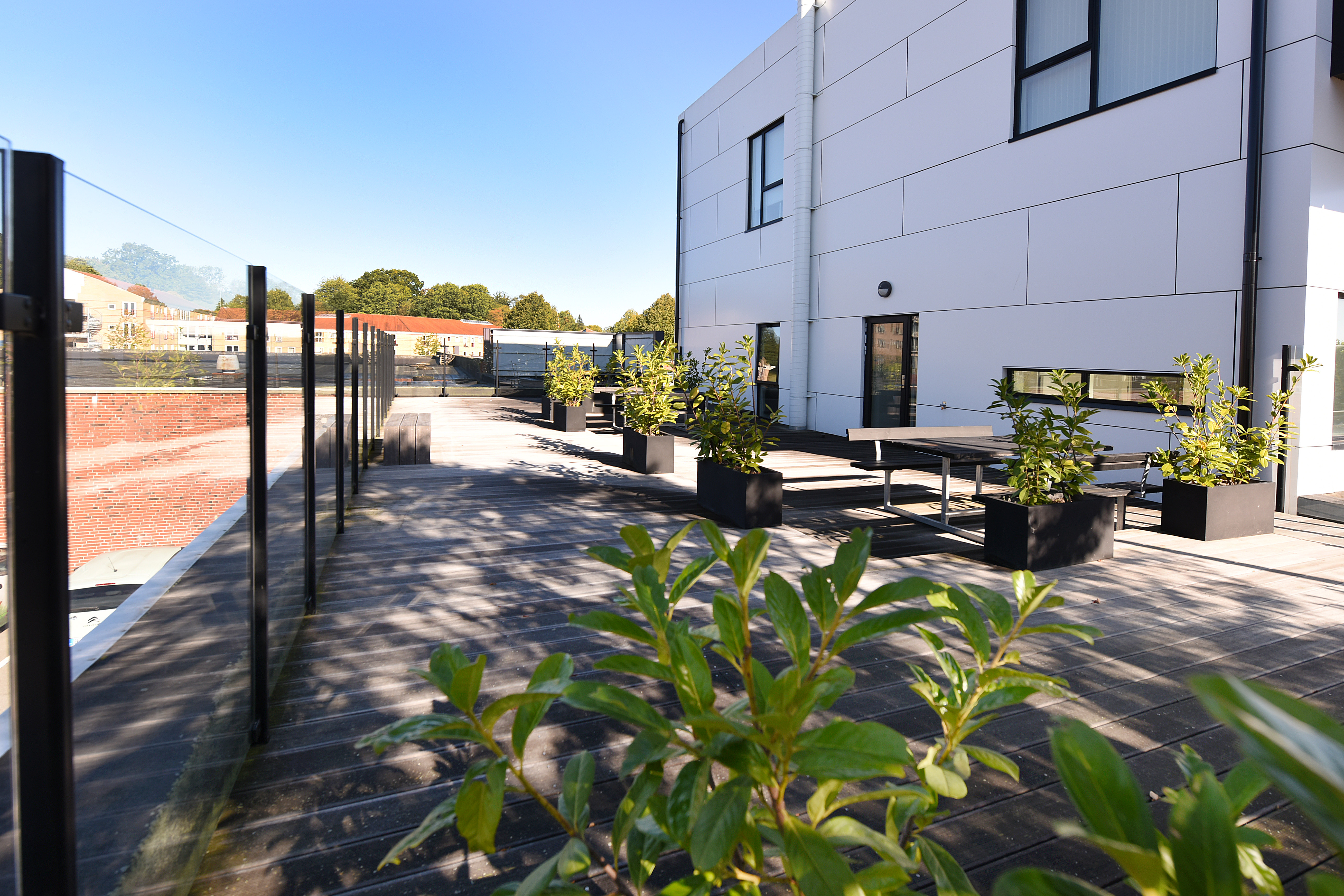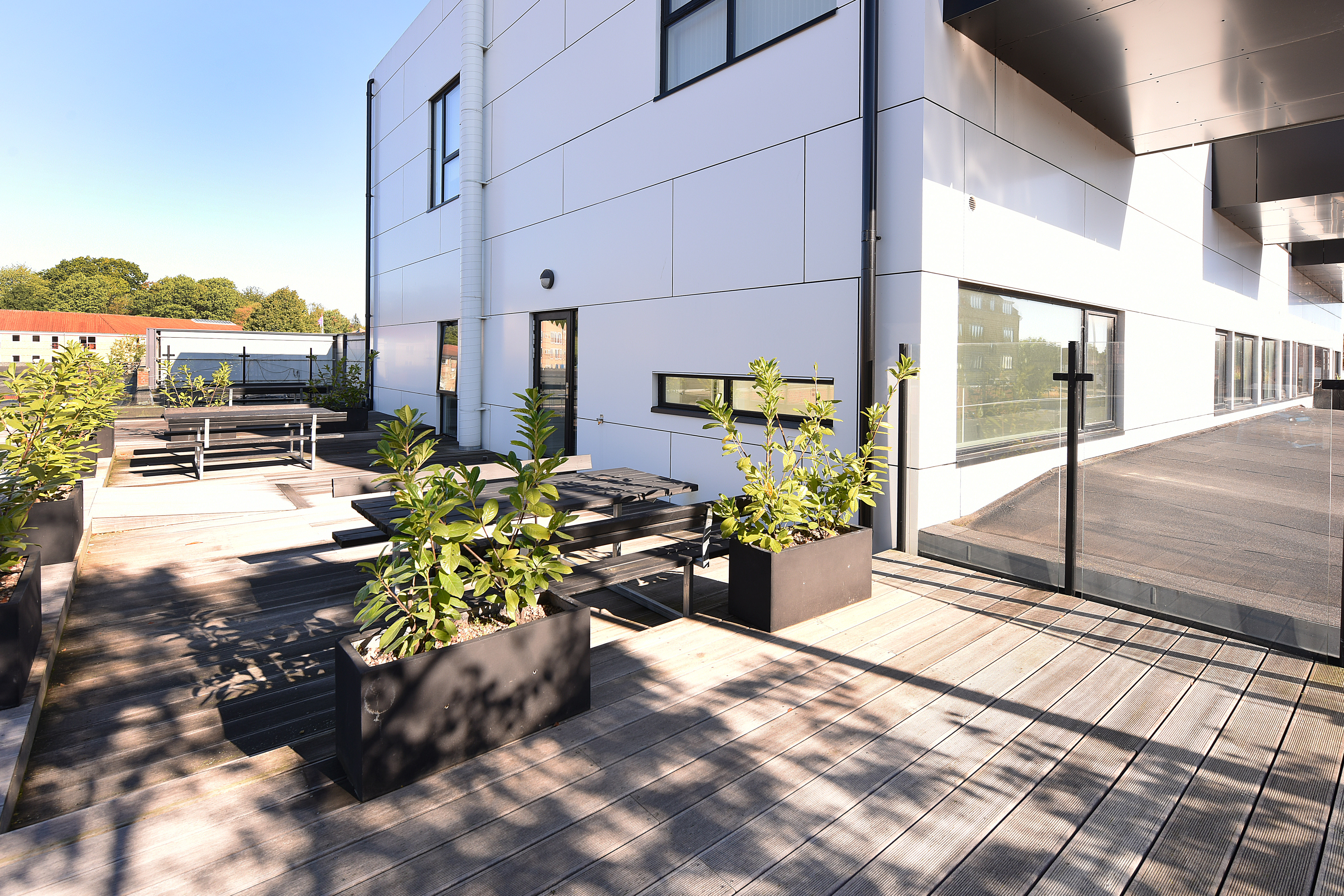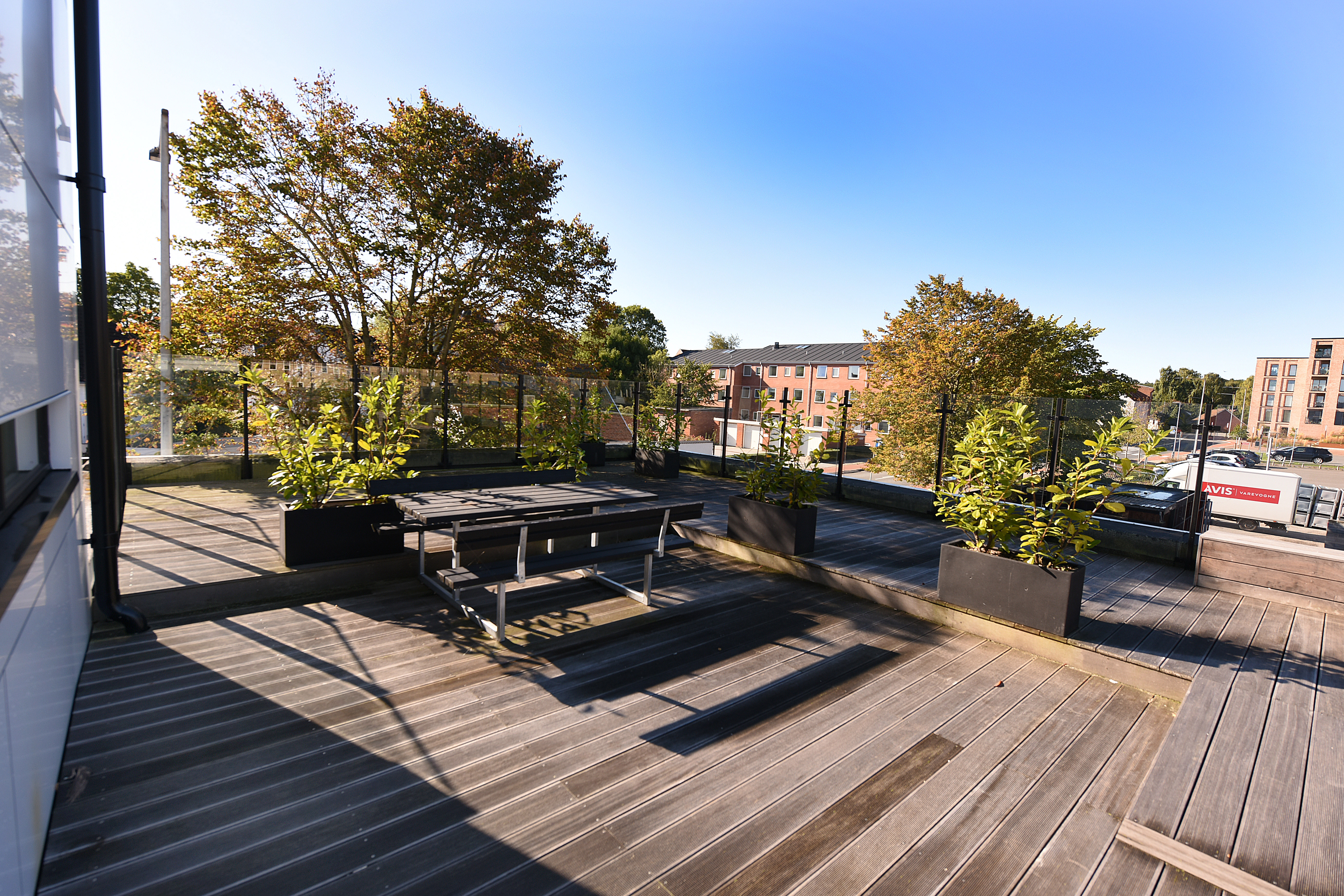 Der er adgang til stor, fælles tagterrasse samt mulighed for parkering i gården. Der er endvidere elevator i ejendommen.