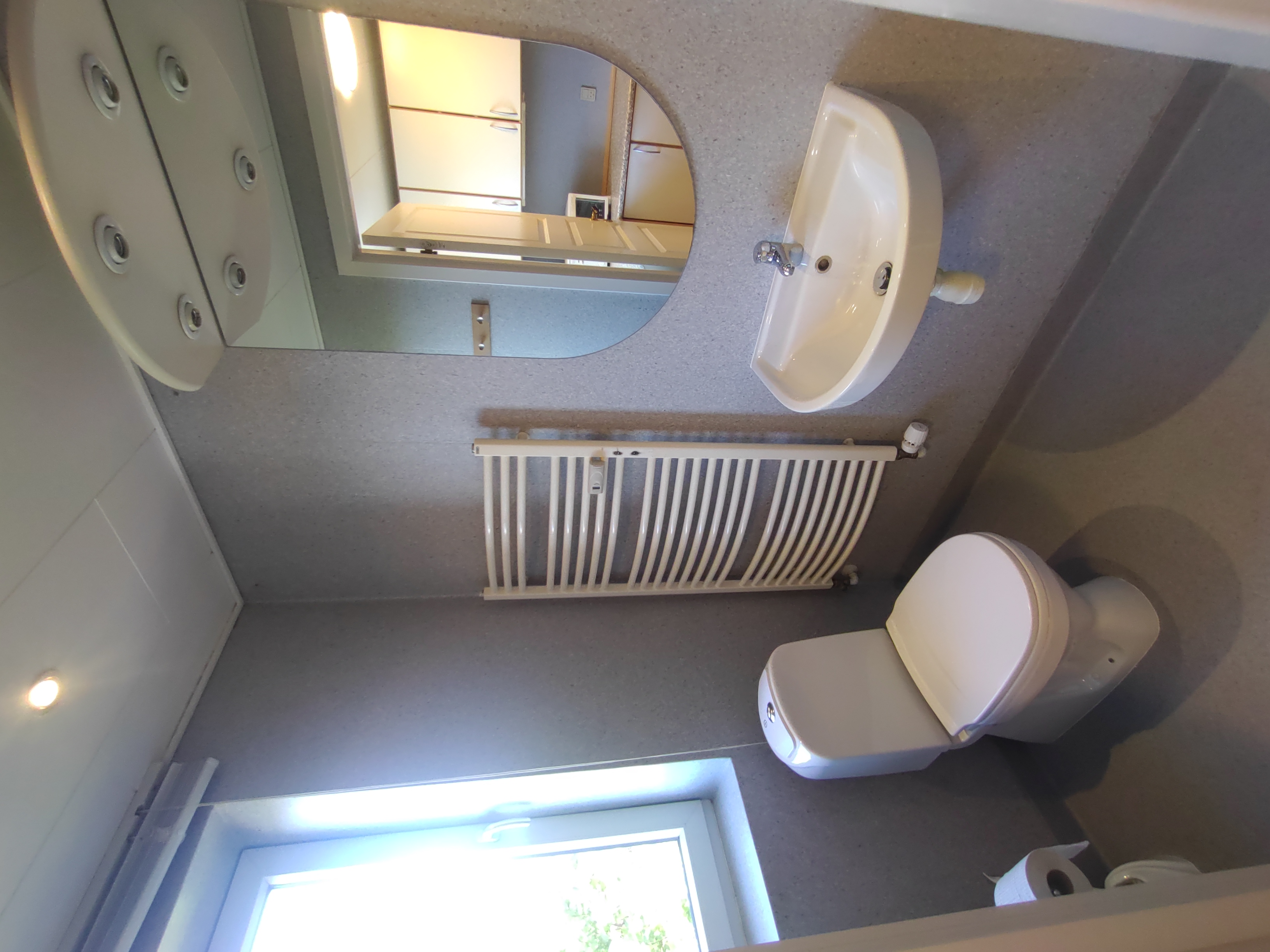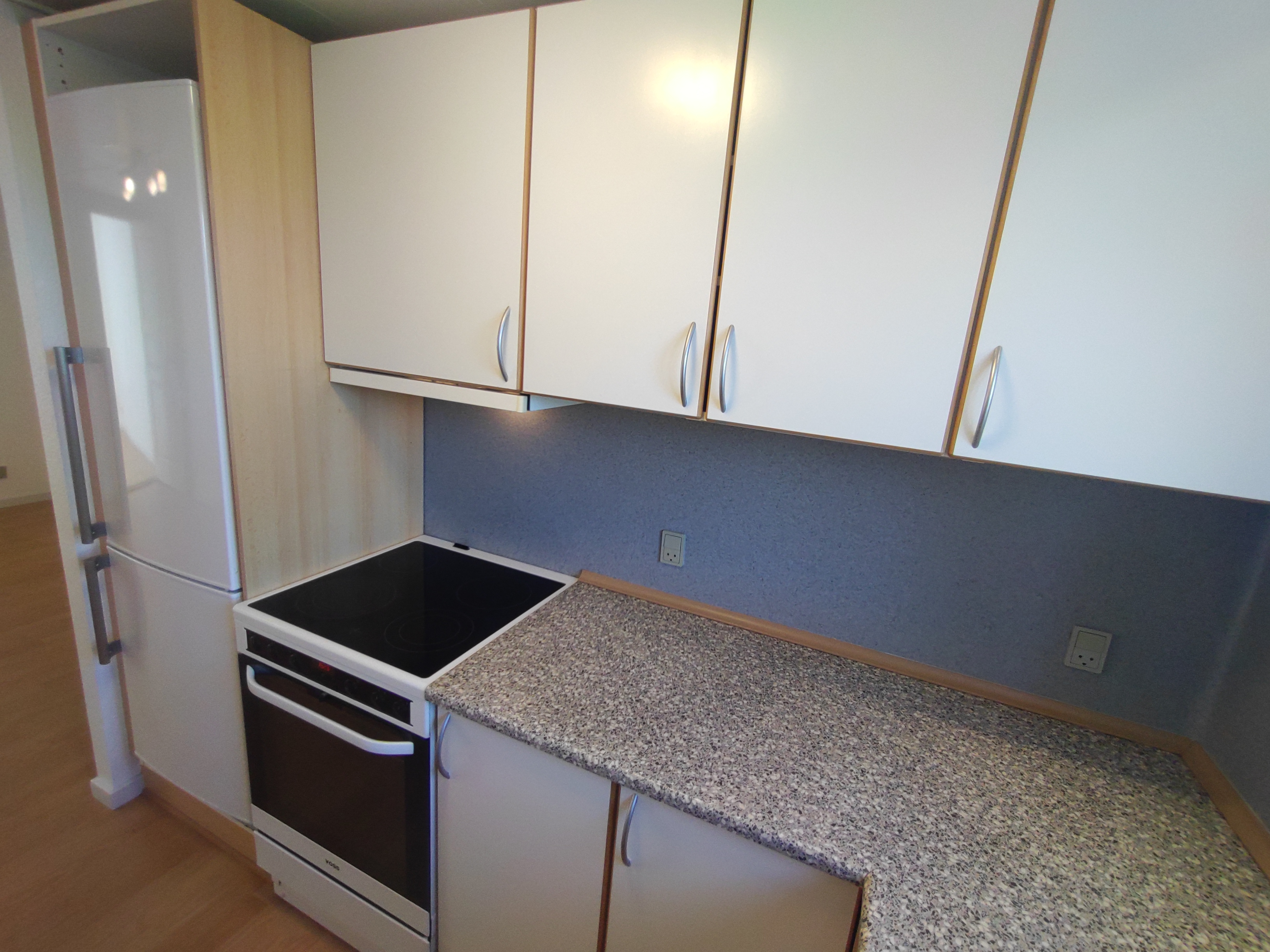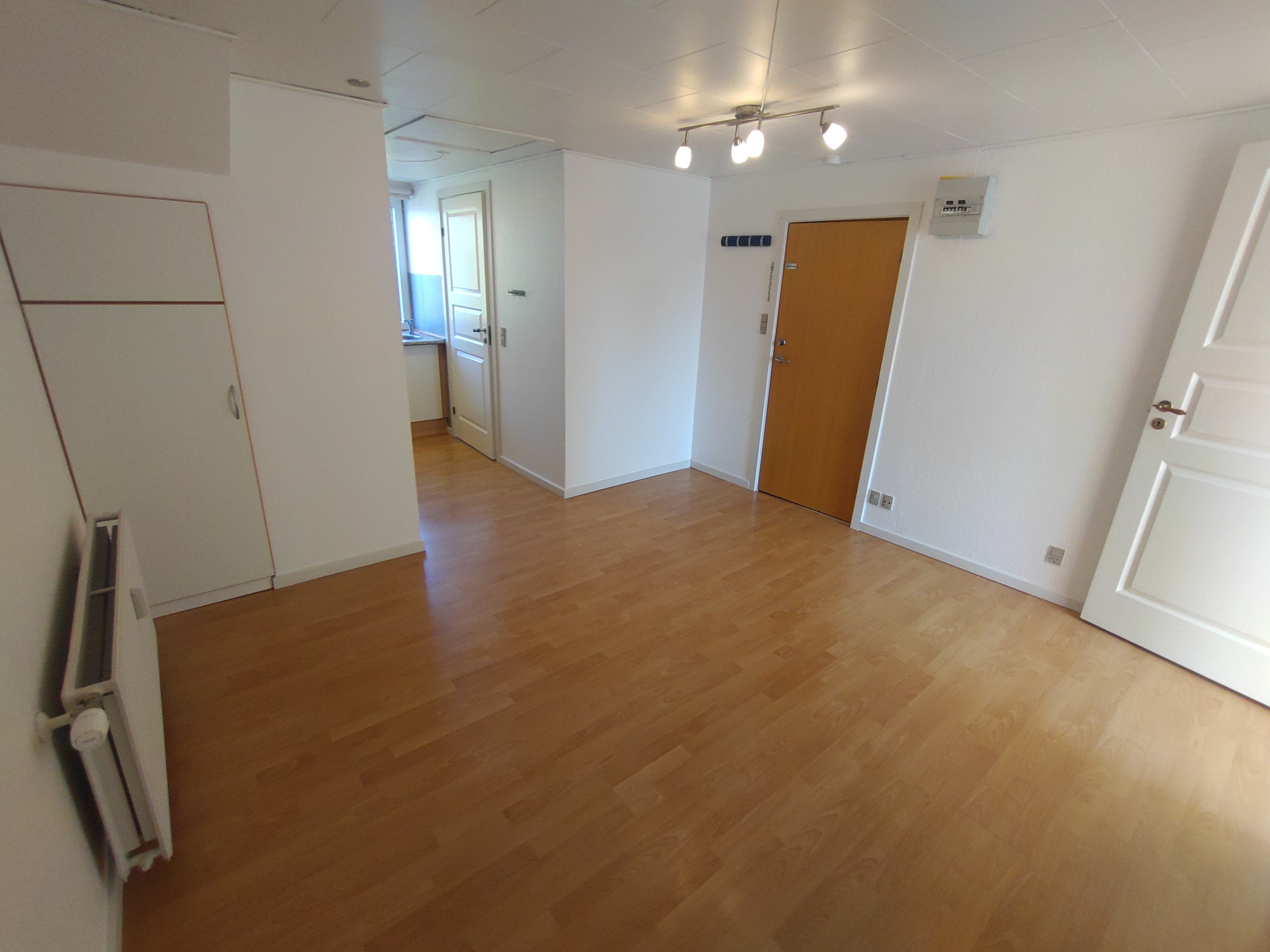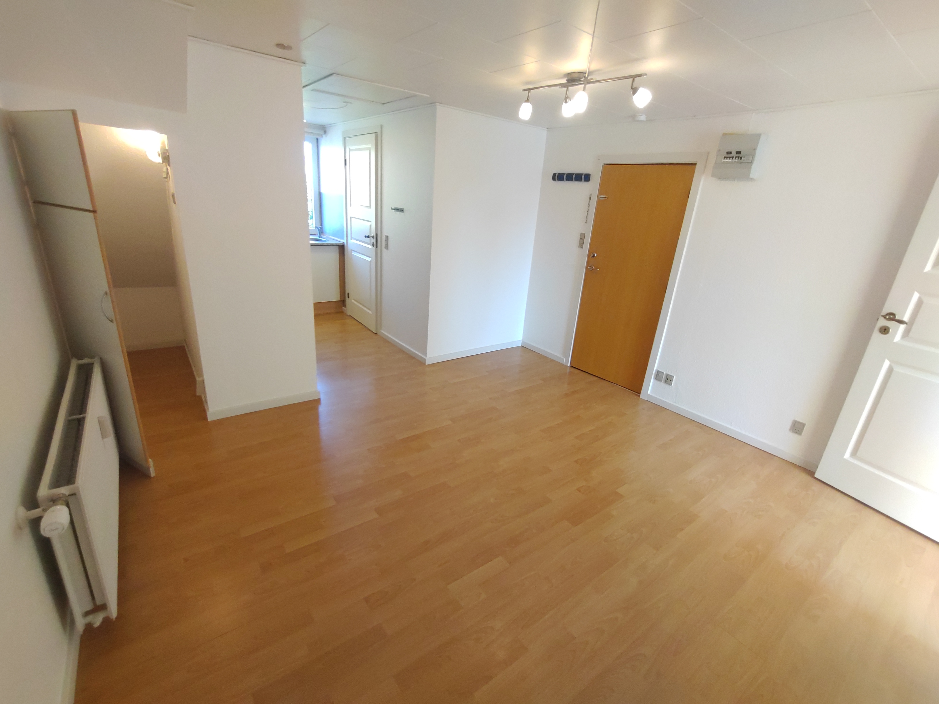 Via entredøren kommer du ind i et rummeligt og lyst køkkenalrum og til højre er køkkenet, som er pænt og i orden med god bord- og skabsplads. Der er nyere stort køleskab med skuffe fryser, næsten nyt Voss keramisk komfur samt emhætte. Ved køkkenet er der indgang til et pænt badeværelse med bl.a. håndklædetørrer. Til venstre for køkken-alrummet finder du et fint og imødekommende soveværelse.