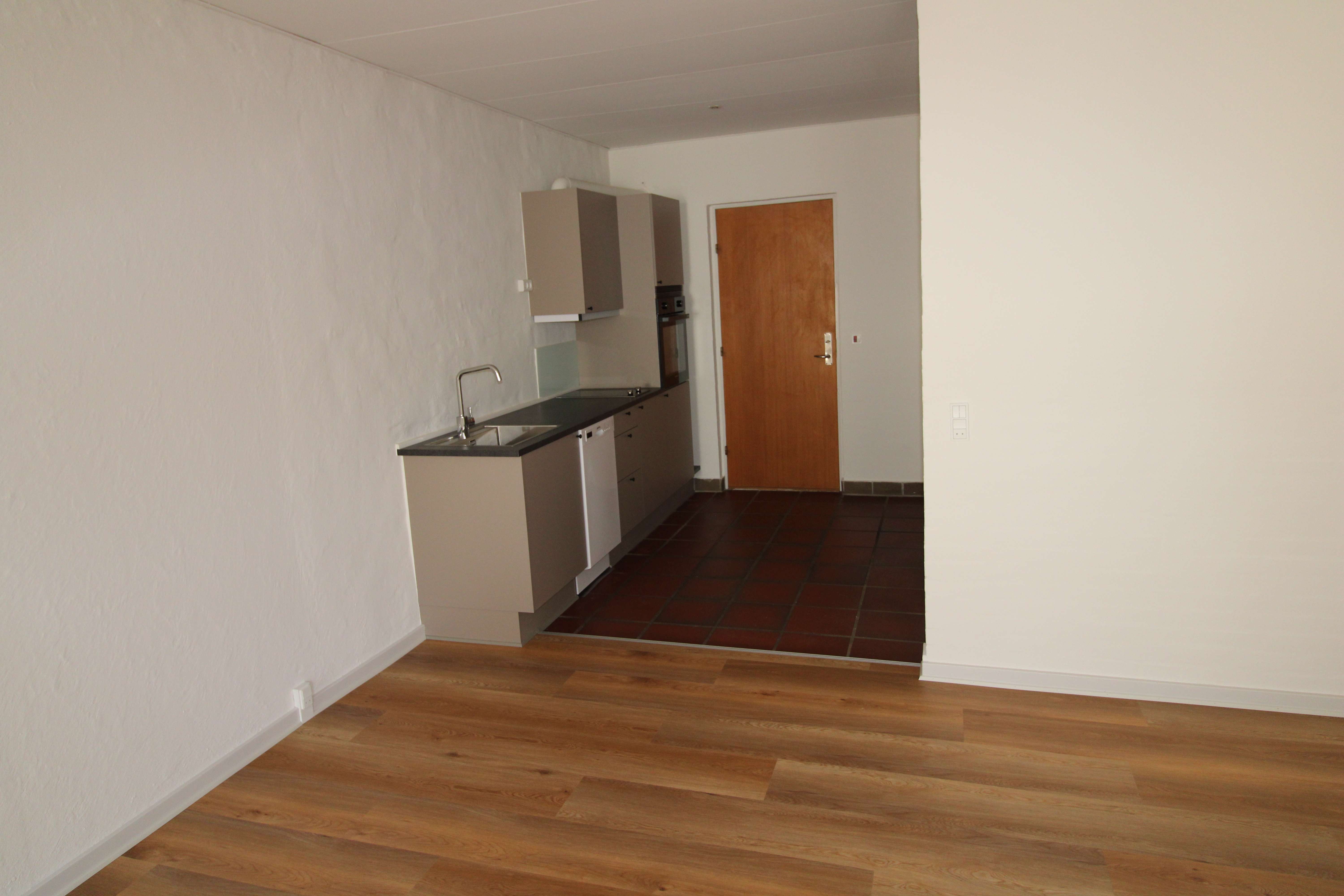 Lejemålet byder på et hyggeligt lille køkken udstyret med to kogezoner, en praktisk ovn i arbejdshøjde og køle-fryseskab. Du får en stor, lys og indbydende stue samt et rummeligt badeværelse. Desuden medfølger et tilhørende depotrum placeret lige overfor lejemålet.