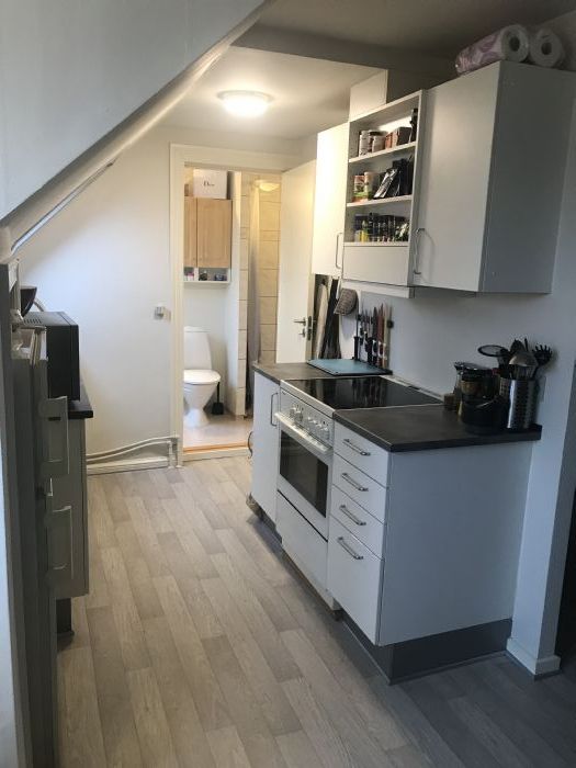 Dejlig velholdt to-værelses lejlighed med lav husleje - godt indrettet - soveværelse med walk in - stue køkken i et og et dejligt badeværelse med vaskemaskine/tørretumbler - Køkken har installeret opvaskemaskine - Parkering på grunden gratis