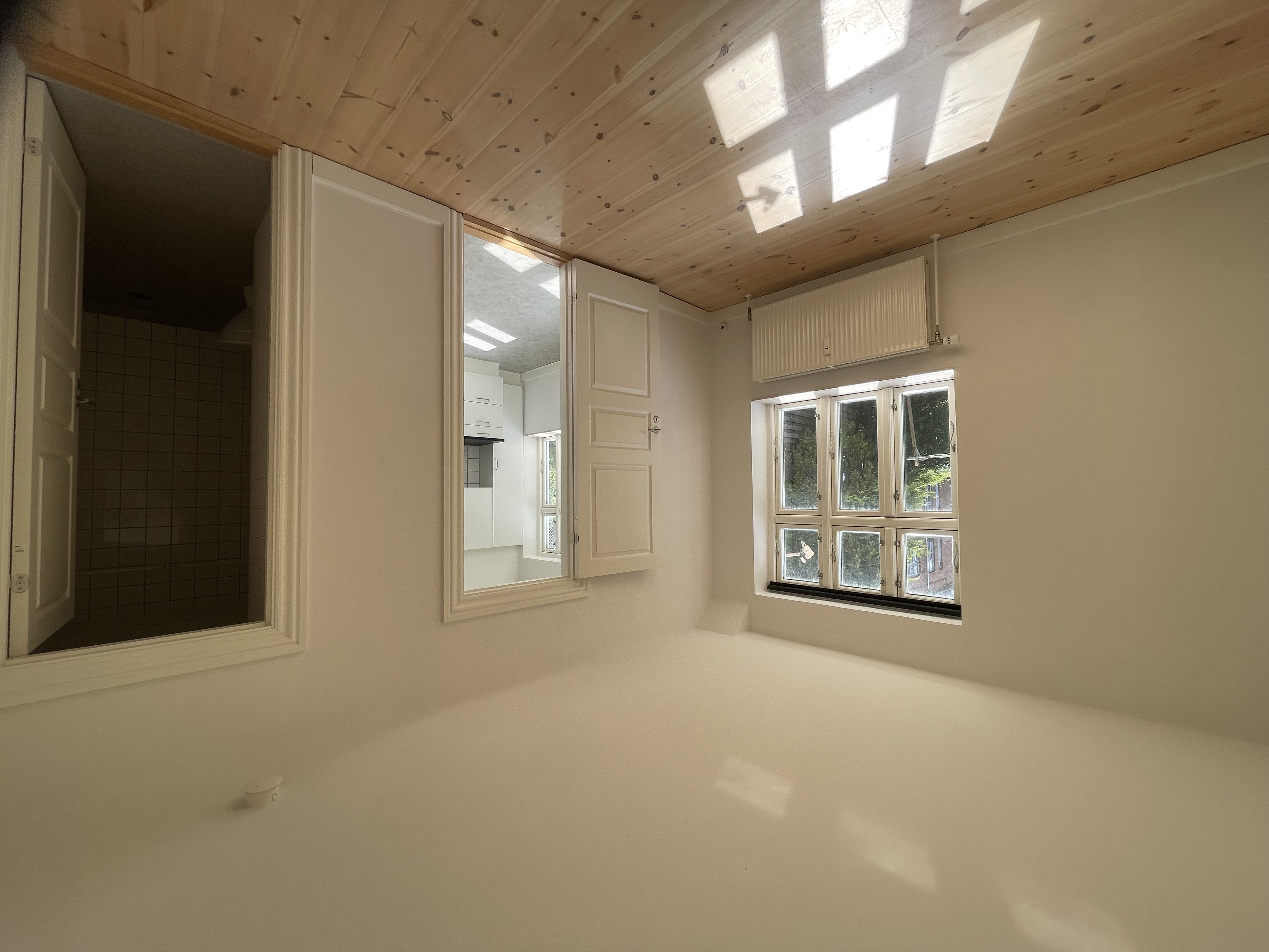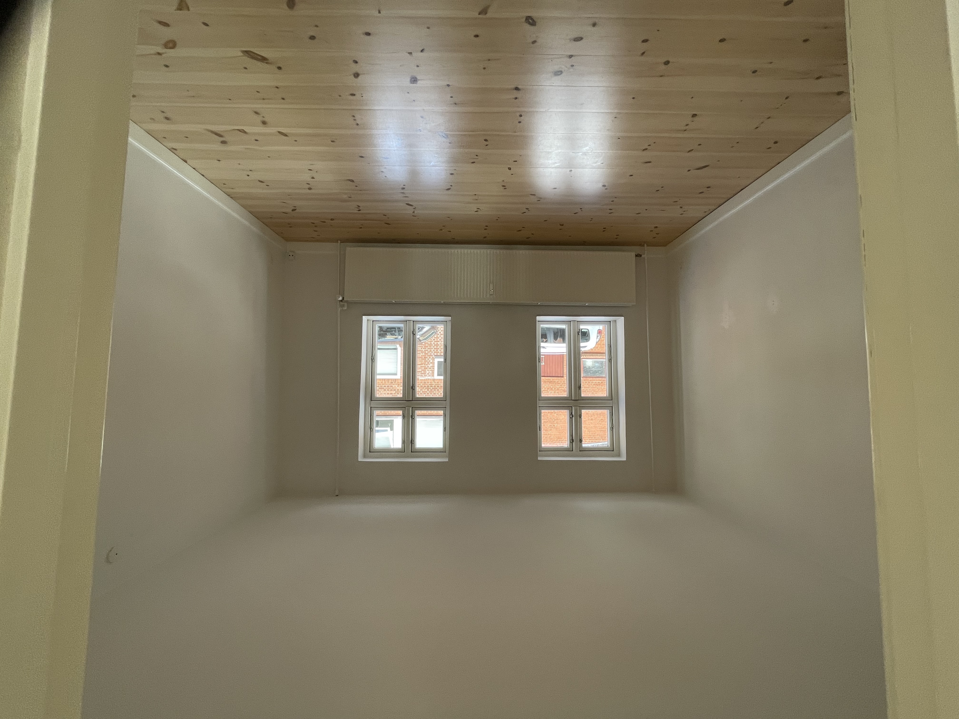 Lejligheden består af 2 værelser med trægulve, derudover pænt badeværelse med skab samt køkken hvor man kan have et spisebord, komfur samt nyere kølefryseskab.