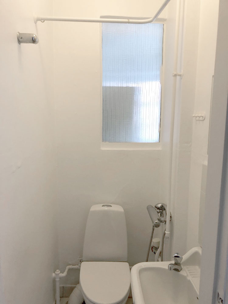 Lejlighedens entre grener ud til alle af lejlighedens 4 rum. Lige frem for indgangen ligger lejlighedens badeværelse som er lille men funktionel. Næste efter kommer et lille hyggeligt køkken med opvaskemaskine og udgang til bagtrappen.