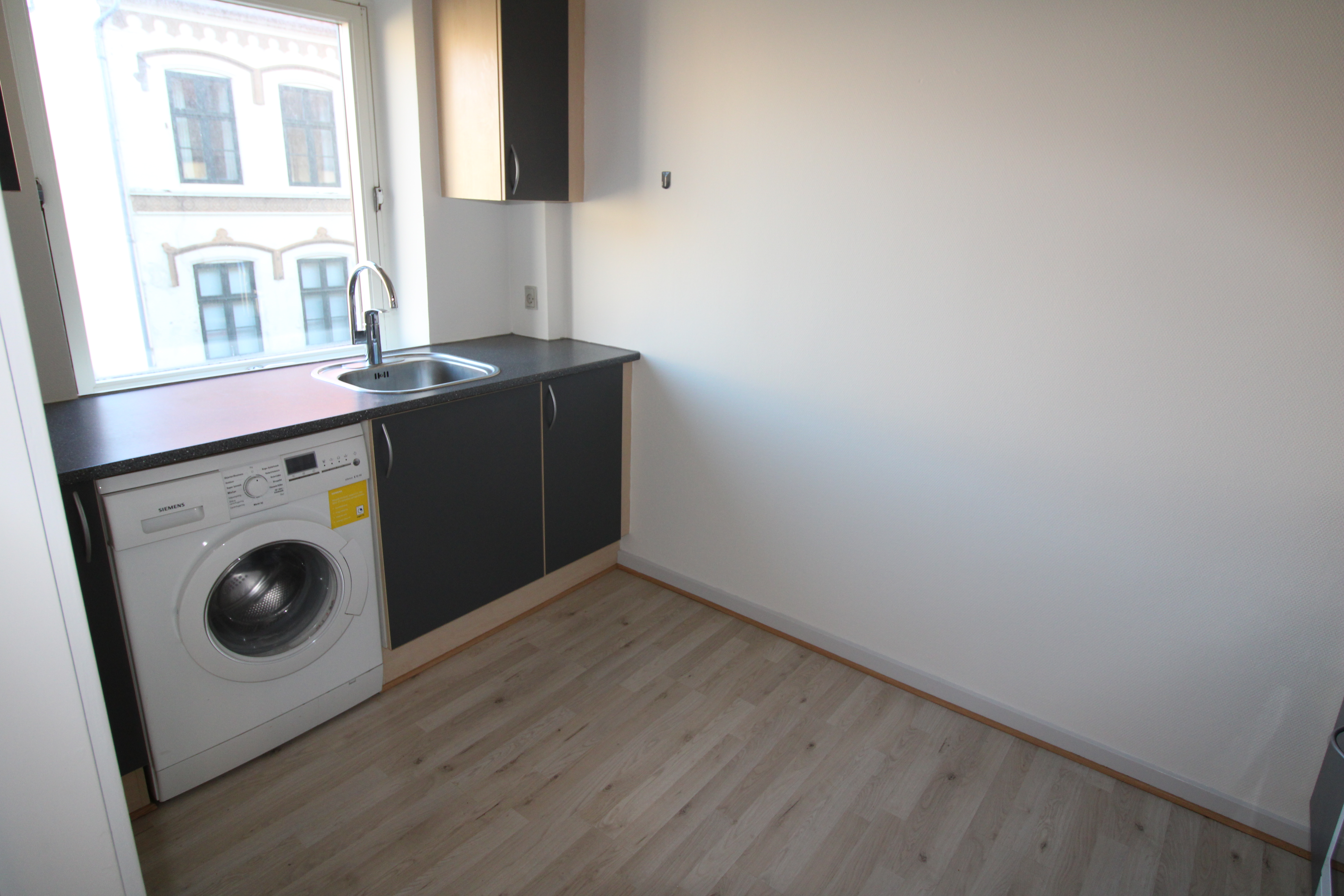 Indeholder entre med skab, stort lyst soveværelse med faste skabe, stue og rigtig pænt HTH køkken med plads til opvaskemaskine eller vaskemaskine. Pænt lyst badeværelse.