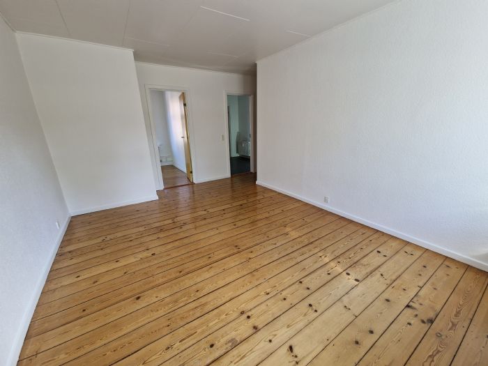 Indgang til entre i stue fra opgang, fra stue er adgang til, soveværelse samt køkken. Soveværelse er udstyret med 3 stk. skabe og danebrogsvindue ud mod gård. Bad / wc med adgang gennem mellemgang til køkken. Vinylgulv i badeværelset samt fliser på vægge i brusenichen, 1 stk. danebrogsvindue ud mod gård.