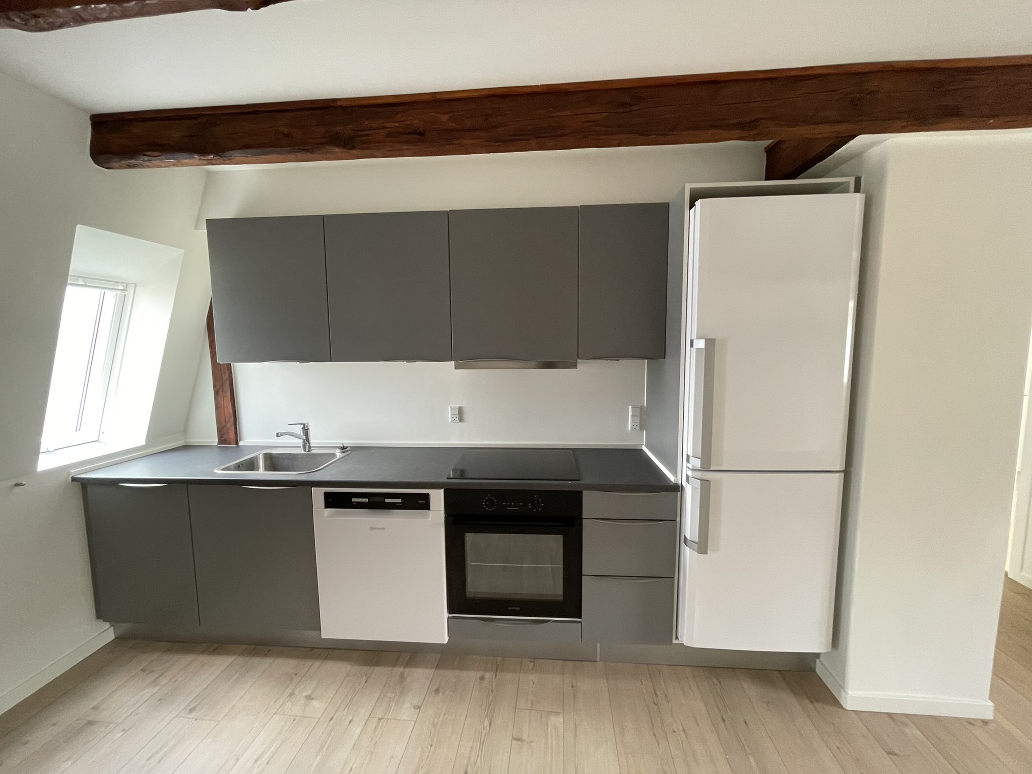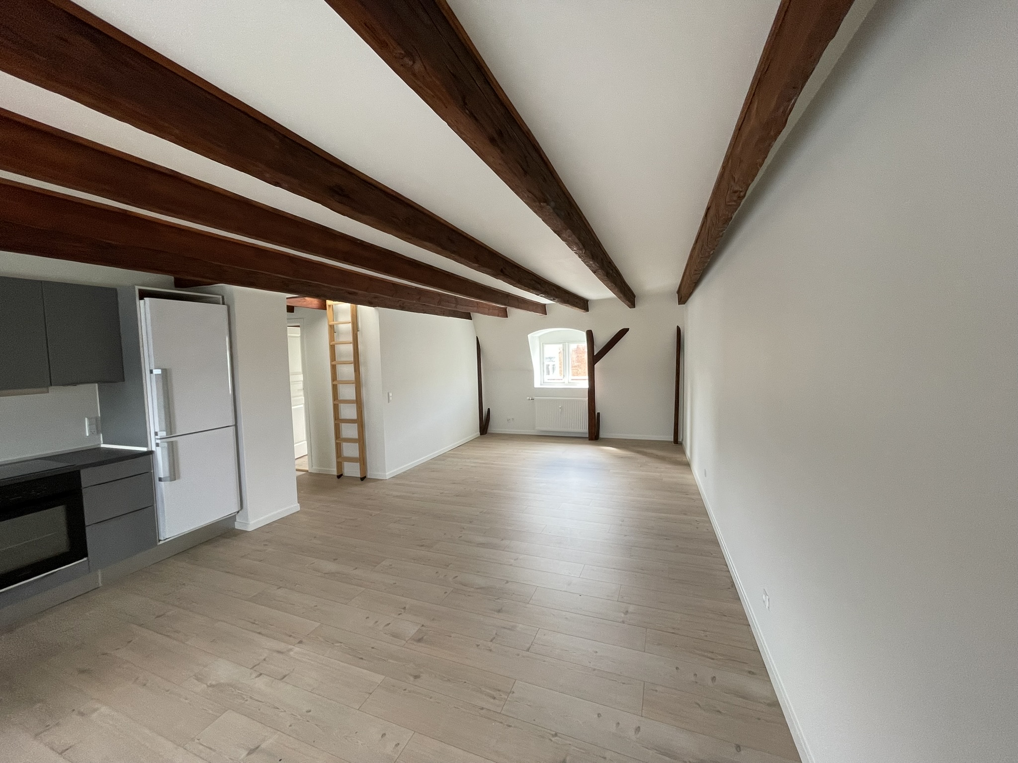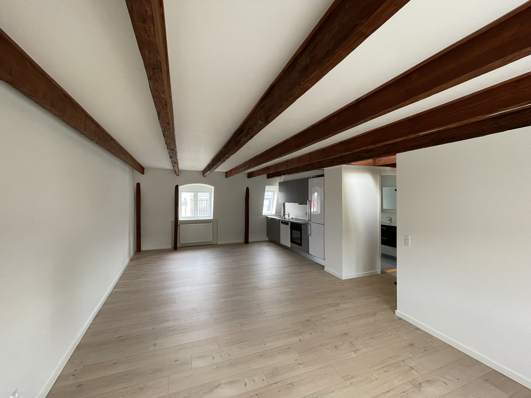 Dejlig lejlighed, hvor alt er ny-istandsat for 6 år siden. Lejligheden er istandsat med åbne bjælker i hyggelig New Yorker stil, som passer til lejligheden.