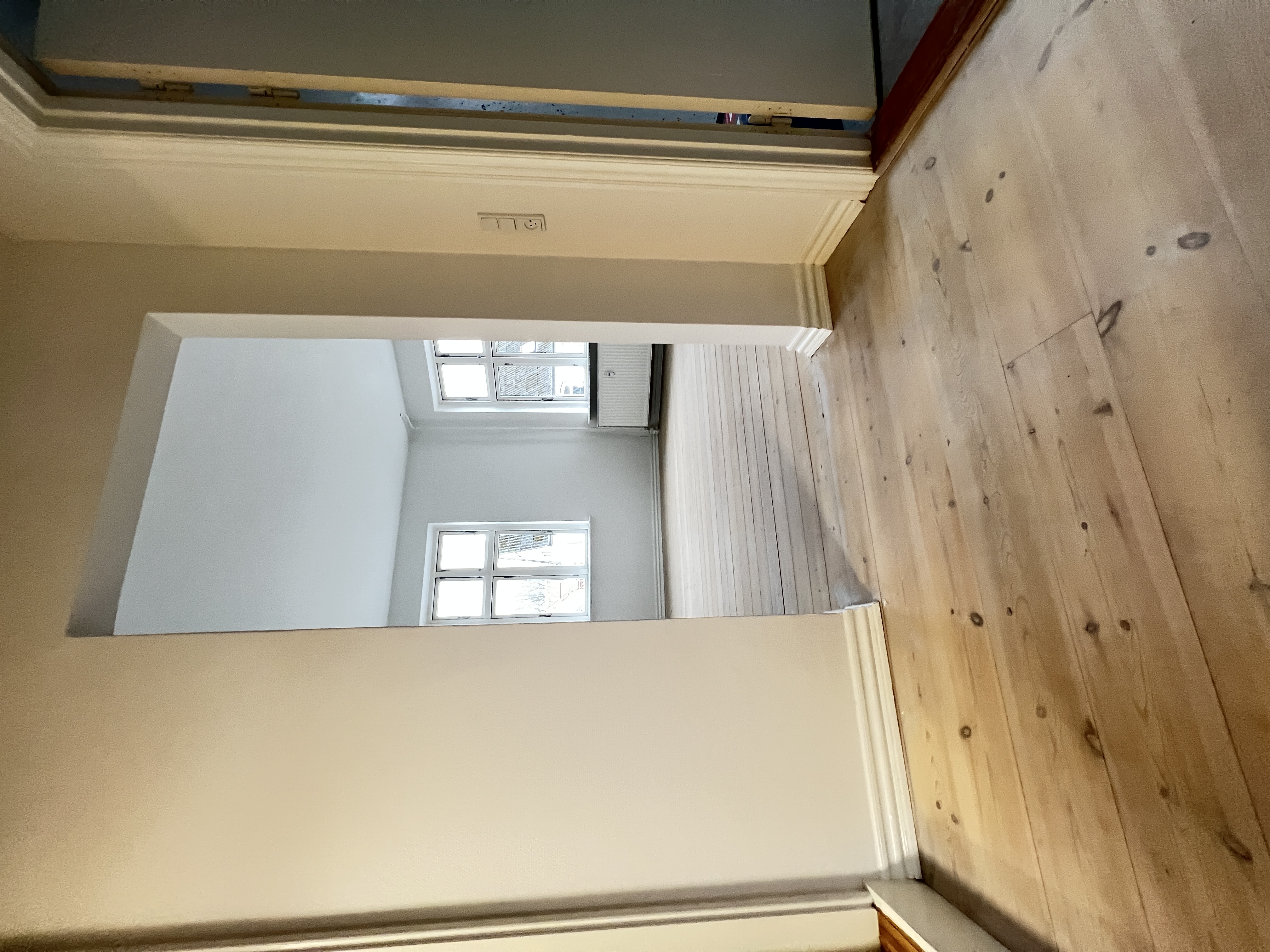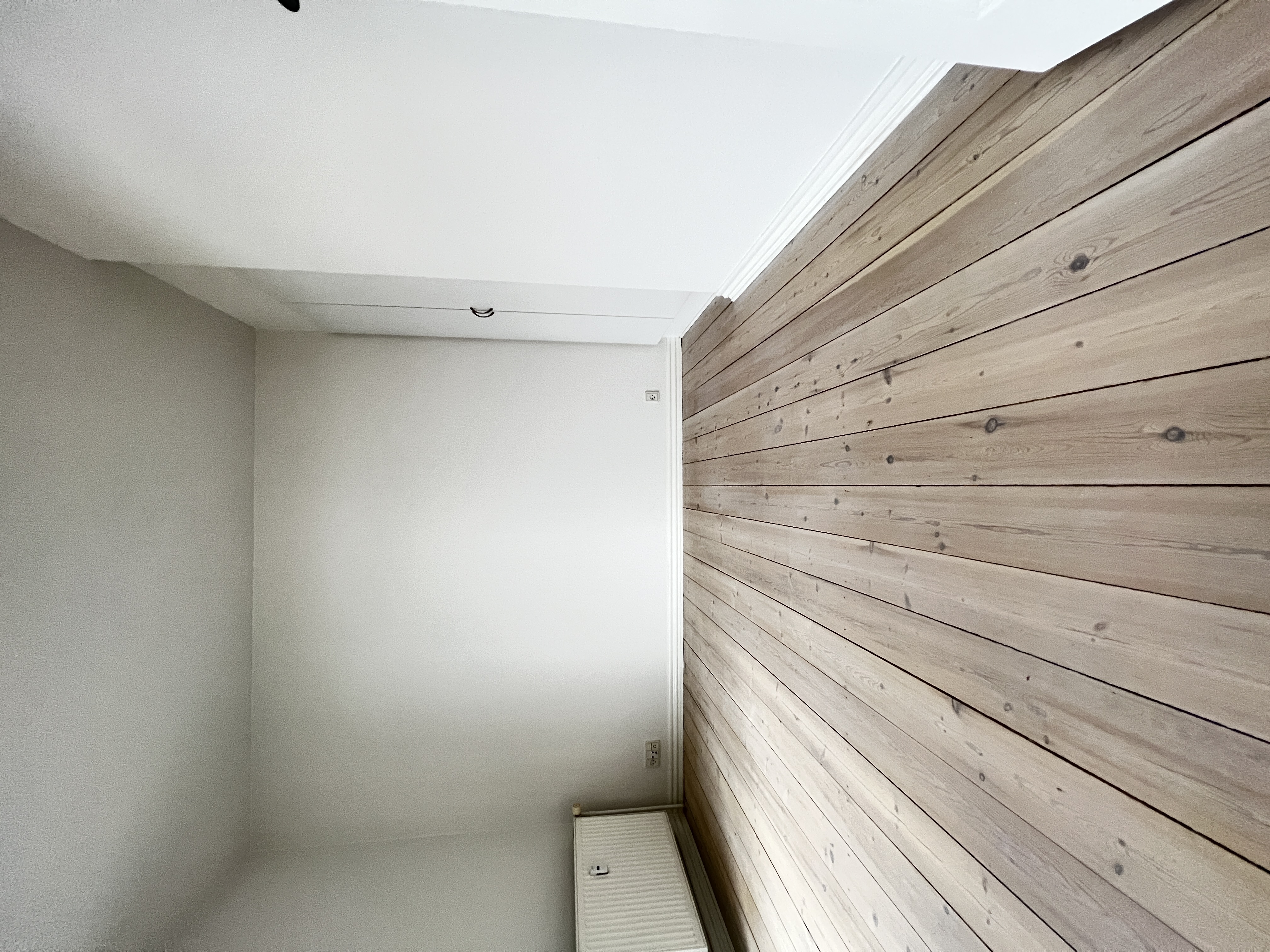 Gulvene i alle opholdsrum er af fyrplanker og der er klinker på badeværelset.
