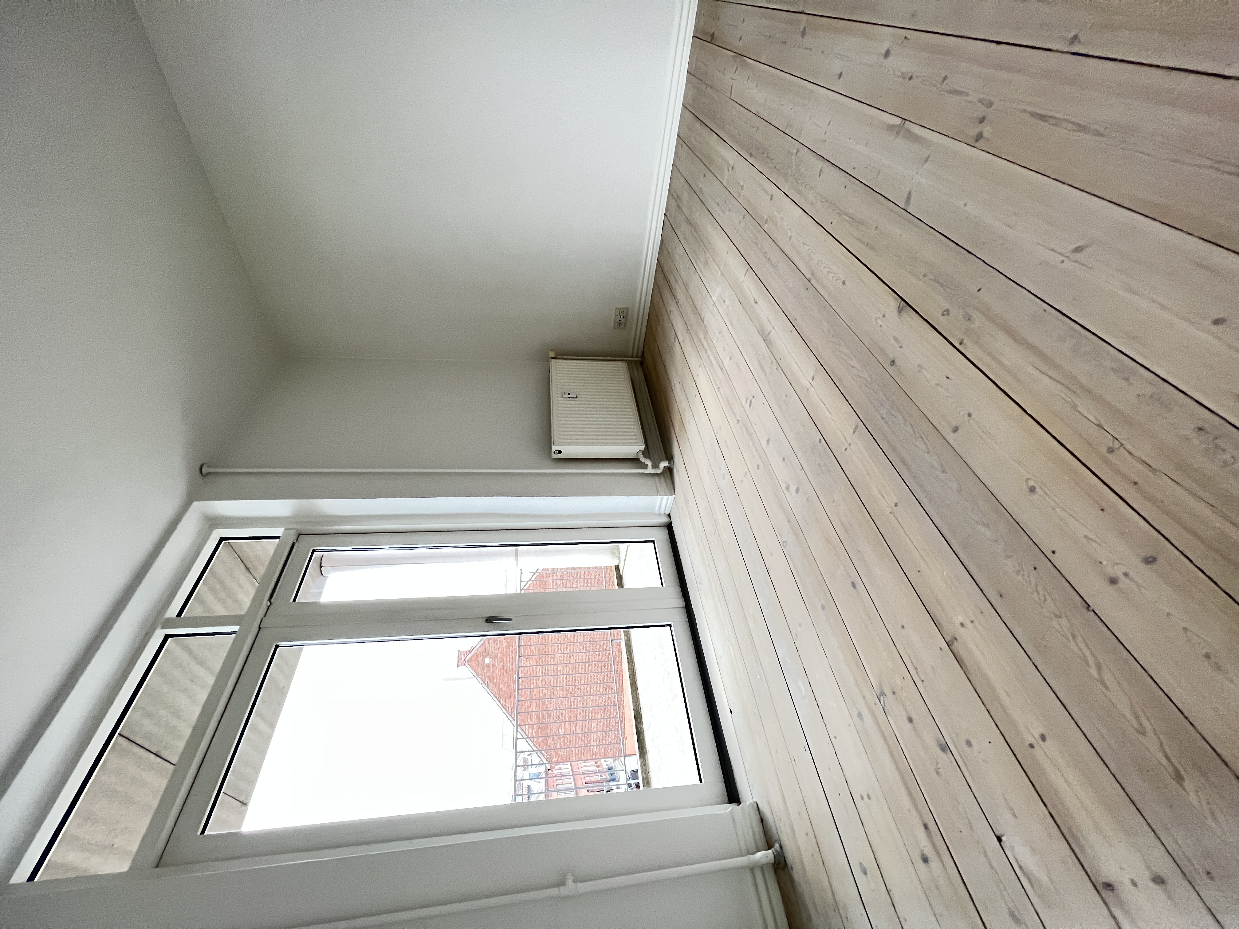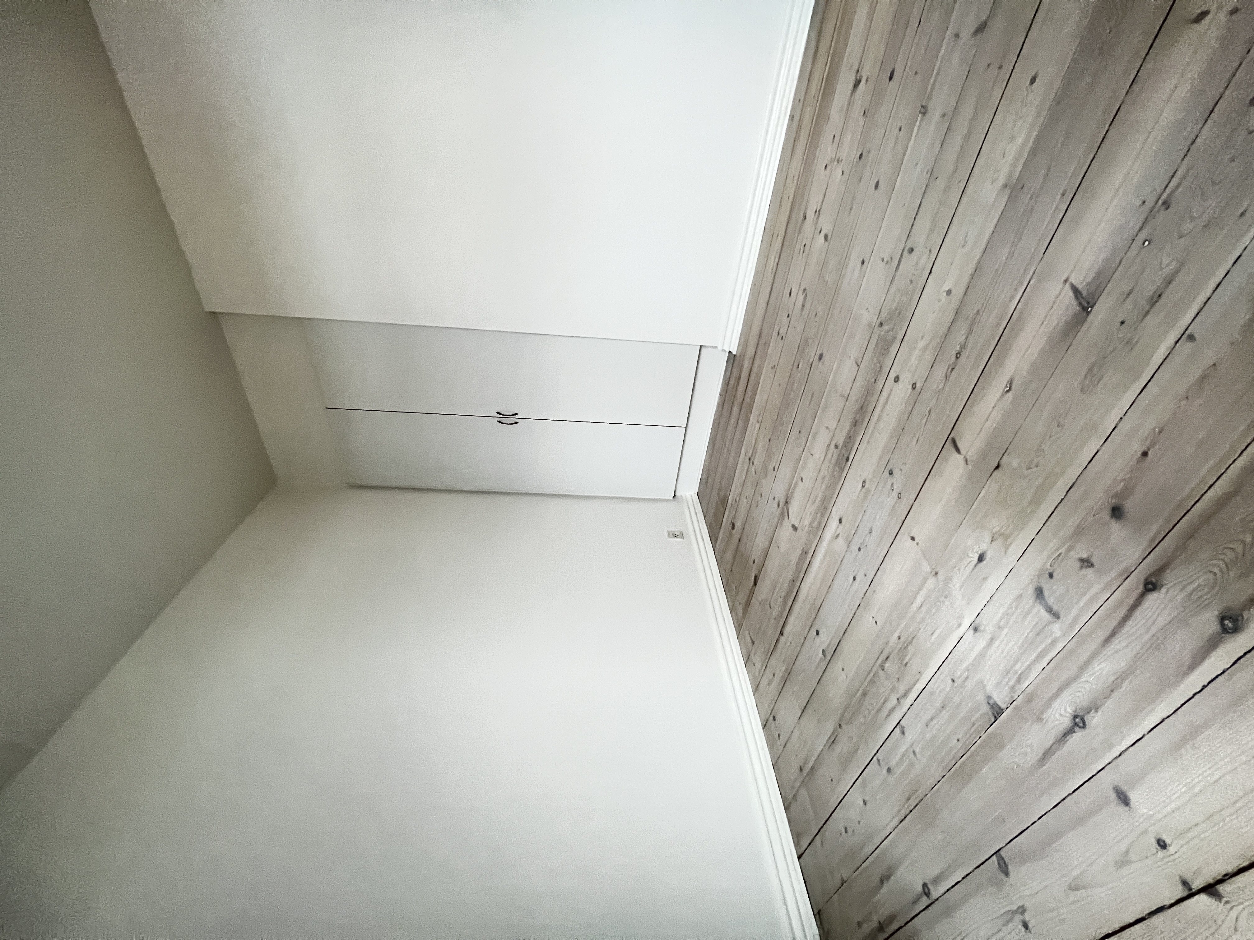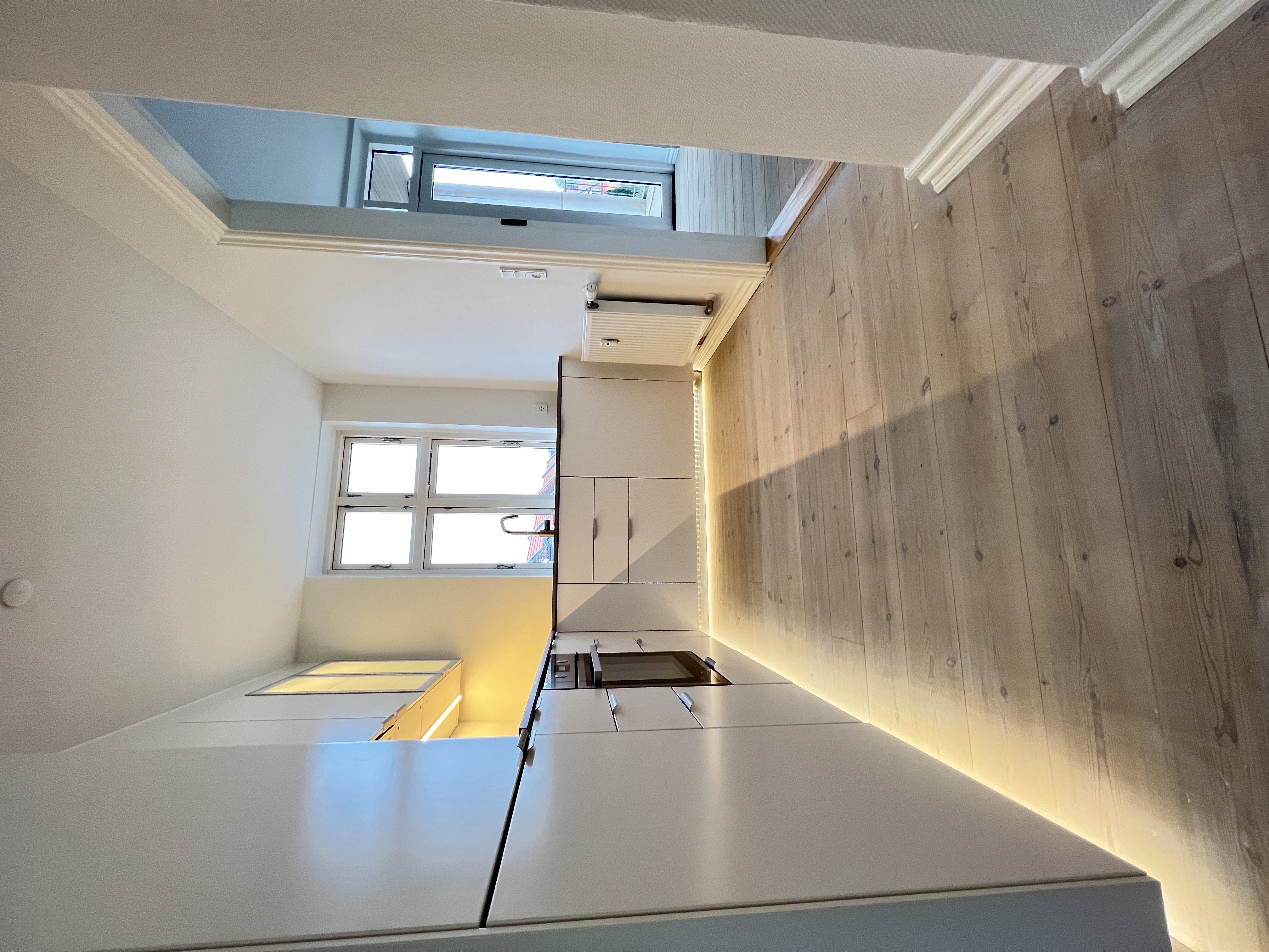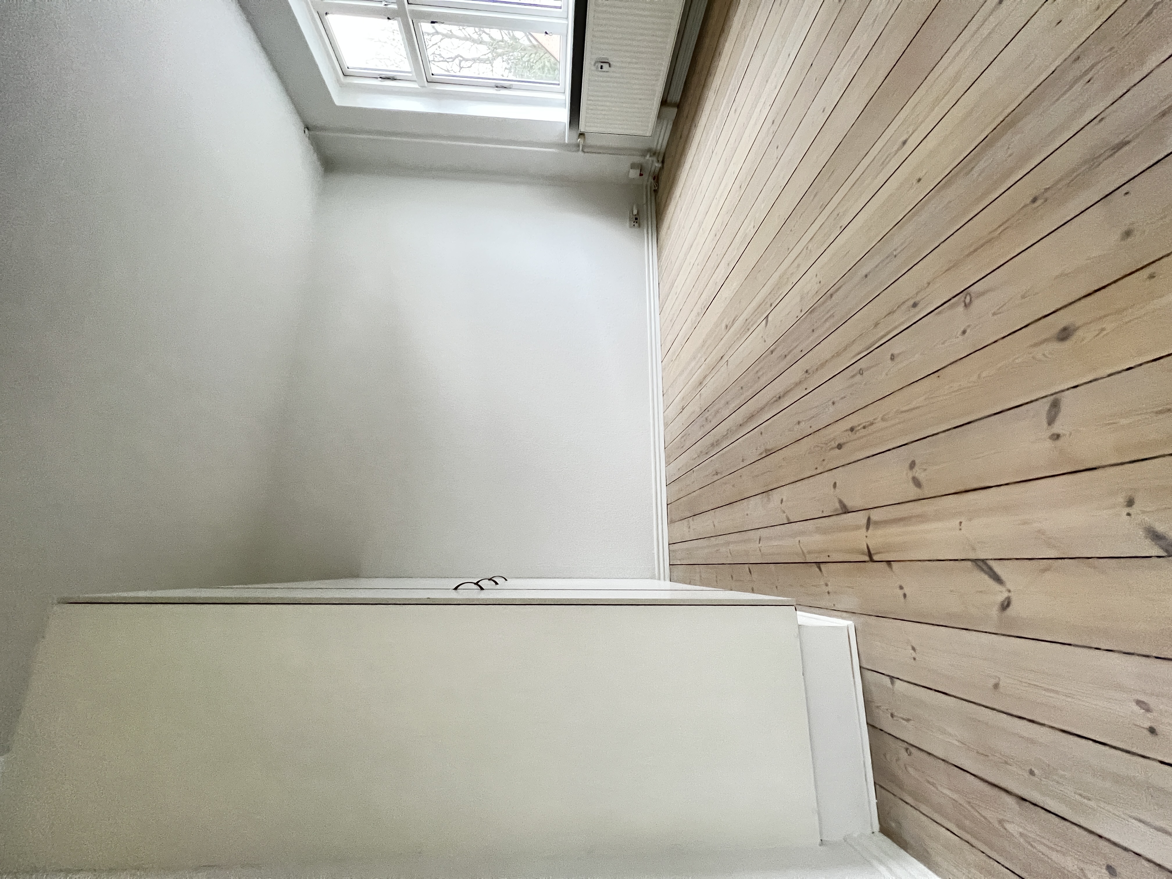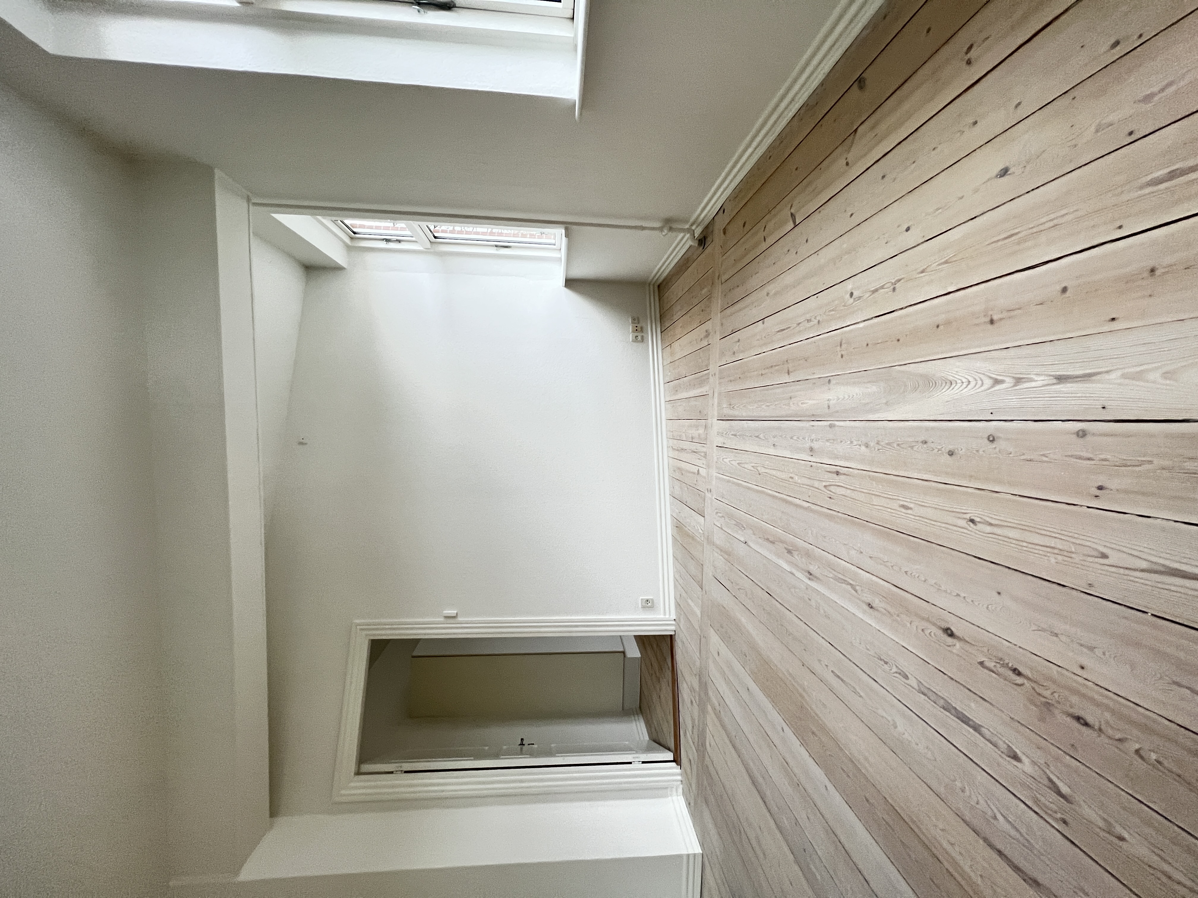 Når du træder ind i lejlighedens entré ligger badeværelset overfør entrédøren, hvor der er gulvvarme og mulighed for tilslutning af egen vaskemaskine og tørretumbler. På venstre hånd finder du det hyggelige køkken med hvideelementer, hvor der er mulighed for at have en mindre spiseplads eller ekstra opbevaring. Videre fra køkkenet kan du finde lejlighedens første værelse, hvor der er indbygget skabsplads og adgang til altanen, hvor der er udsigt til det hyggelige gademiljø.