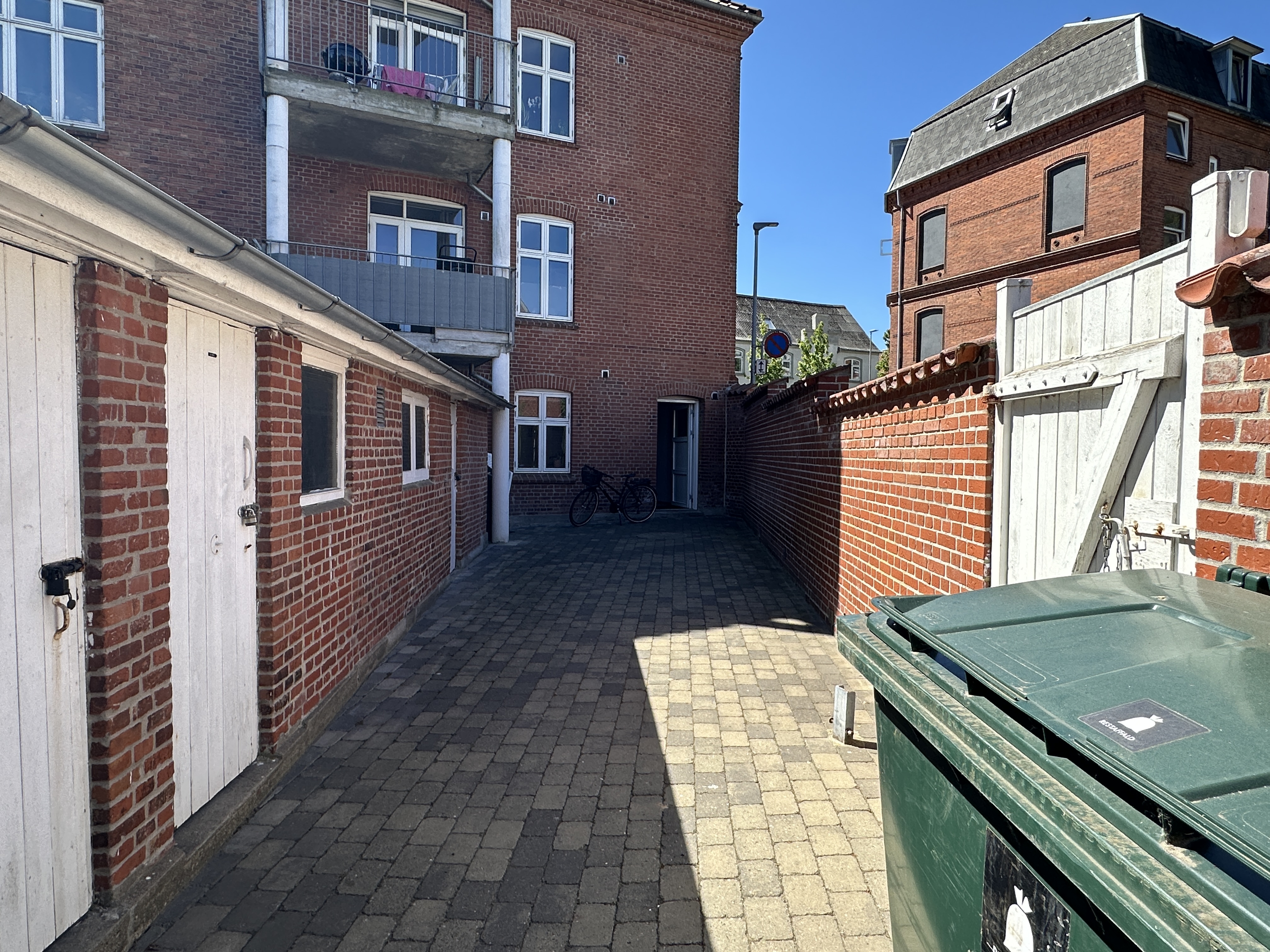 Tilhørende lejligheden er eget opbevaringsrum i baggården og der er mulighed for parkering på gaden.