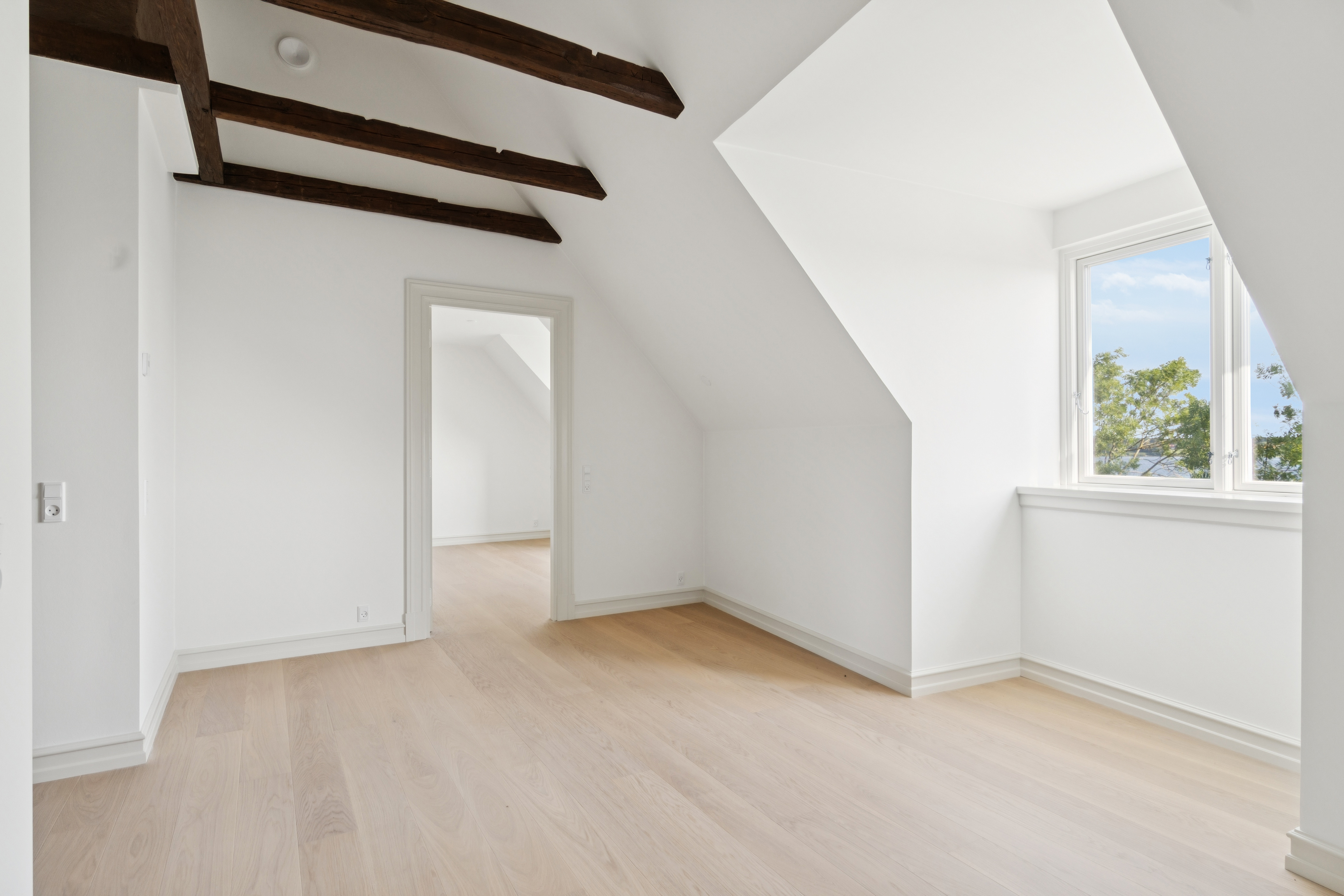 • Alle rum med loft til kip og med fritliggende hanebånd.