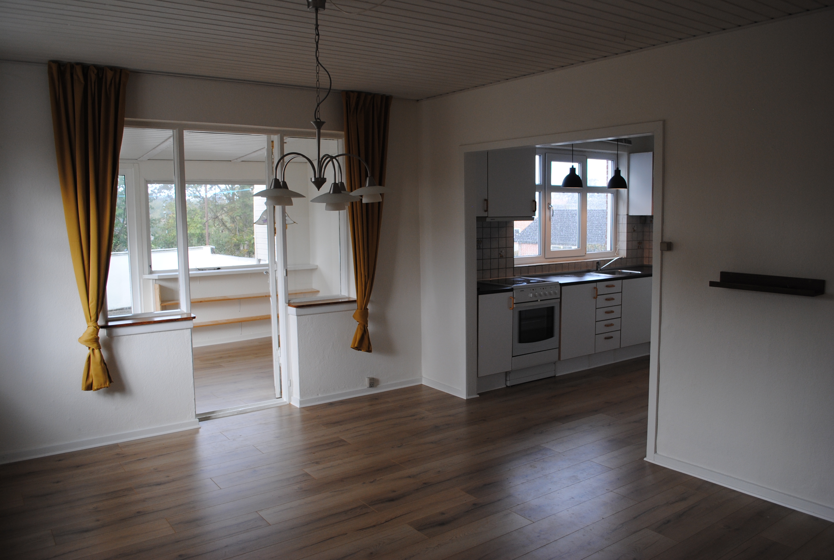 Lejlighed på 1. sal: 90 m2 og 15 m2 opvarmet udestue og altan.