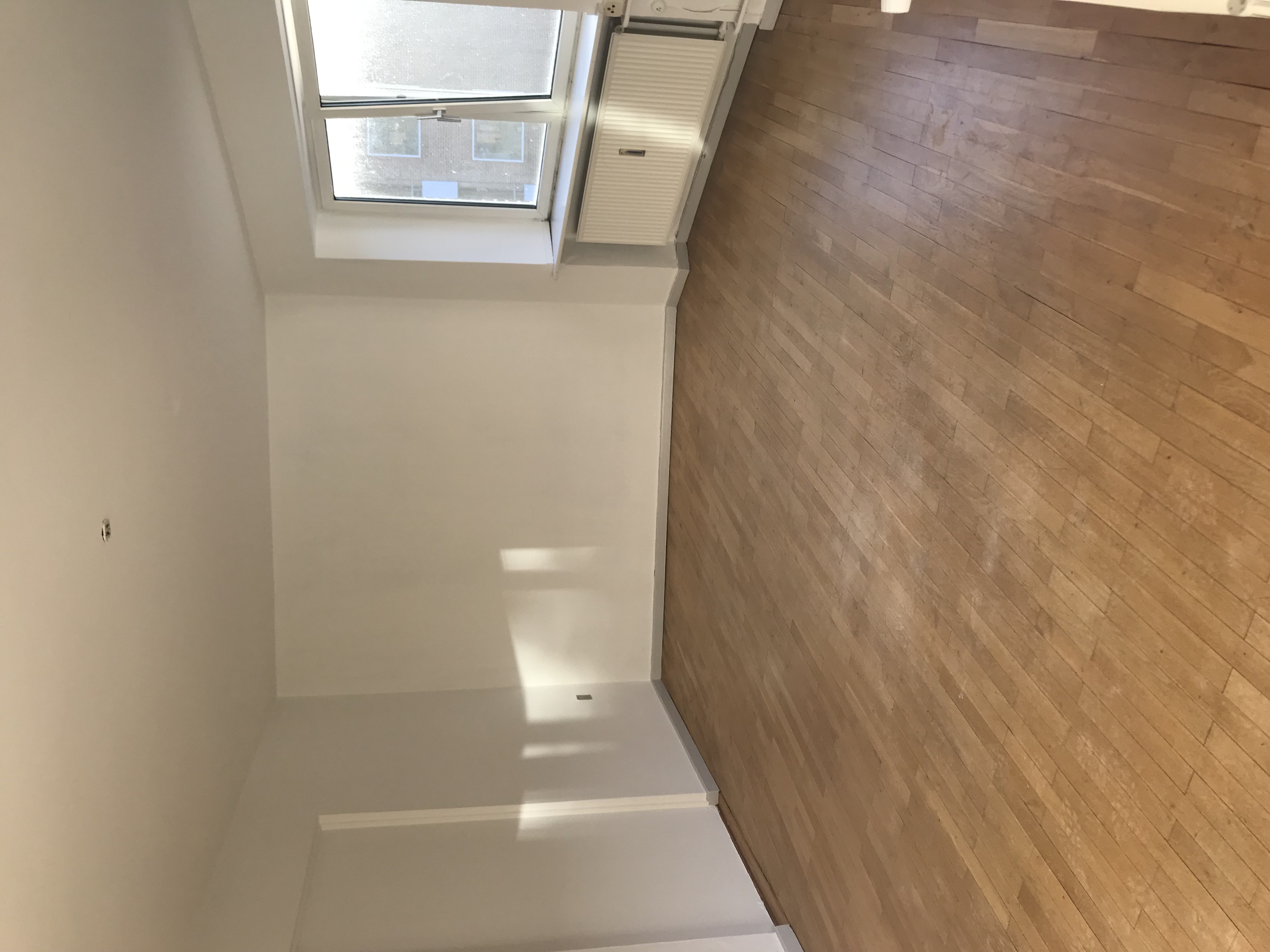 Ved overtagelsen er lejligheden nymalet og der er afslebne gulve og i standsat.