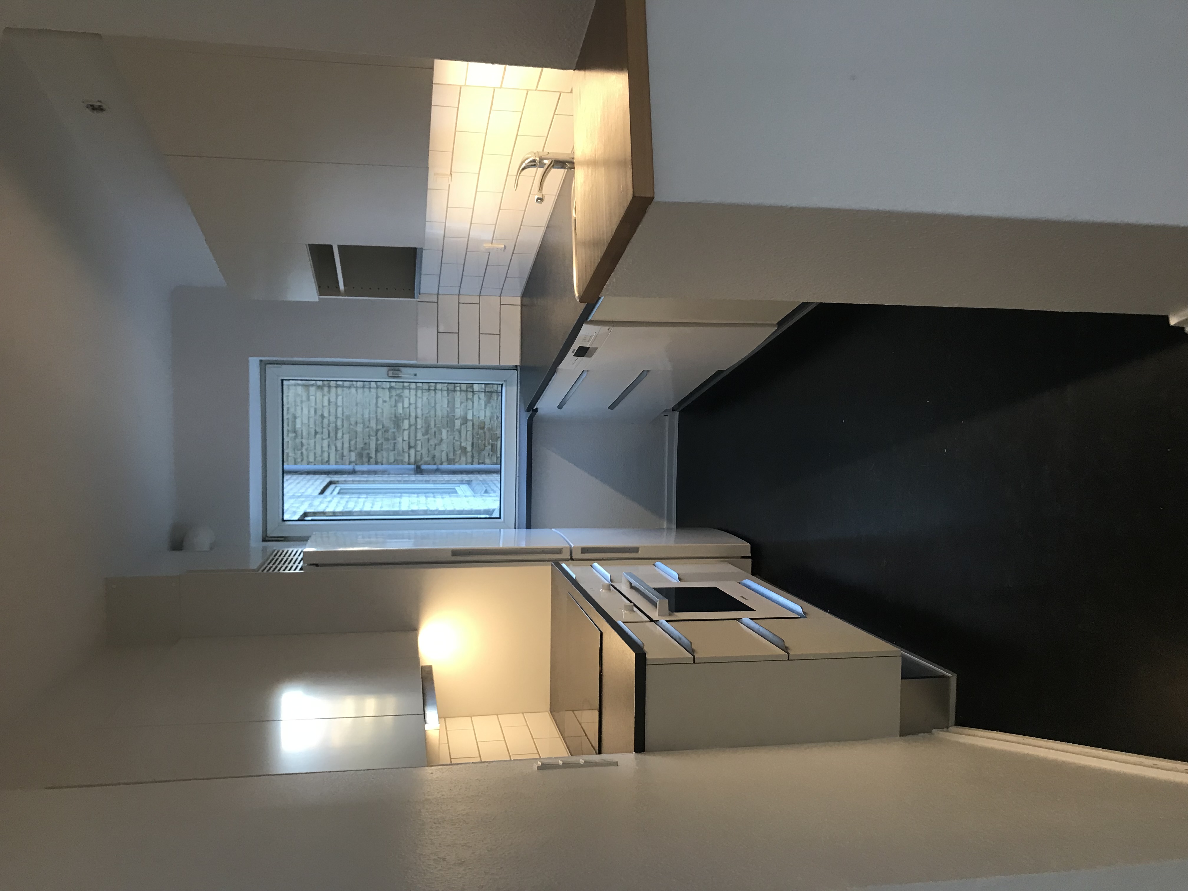 Køkken med stort alrum med masser af plads til stort spisebord/ opholdsrum. Køleskab, komfur, ovn, opvaskemaskine.