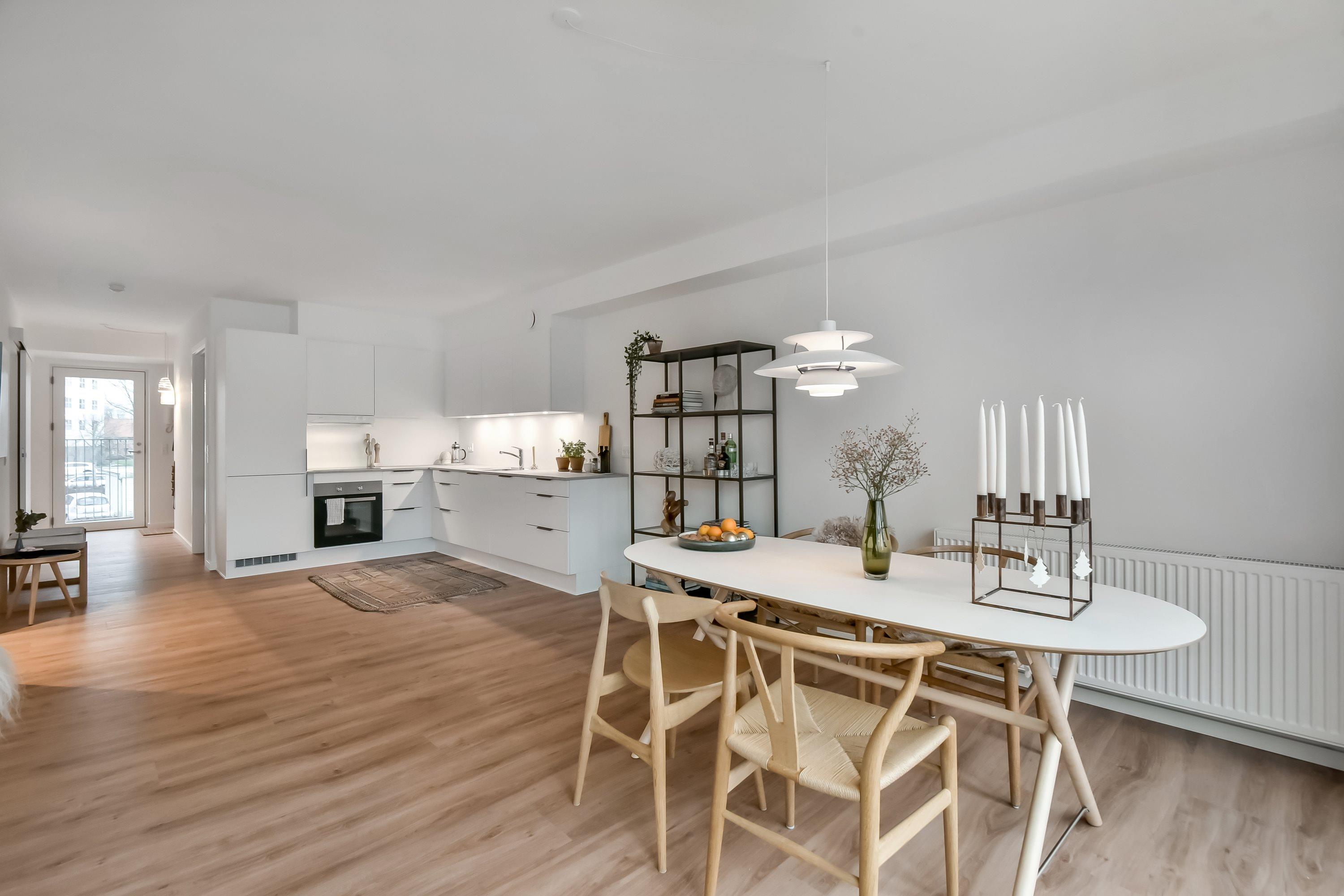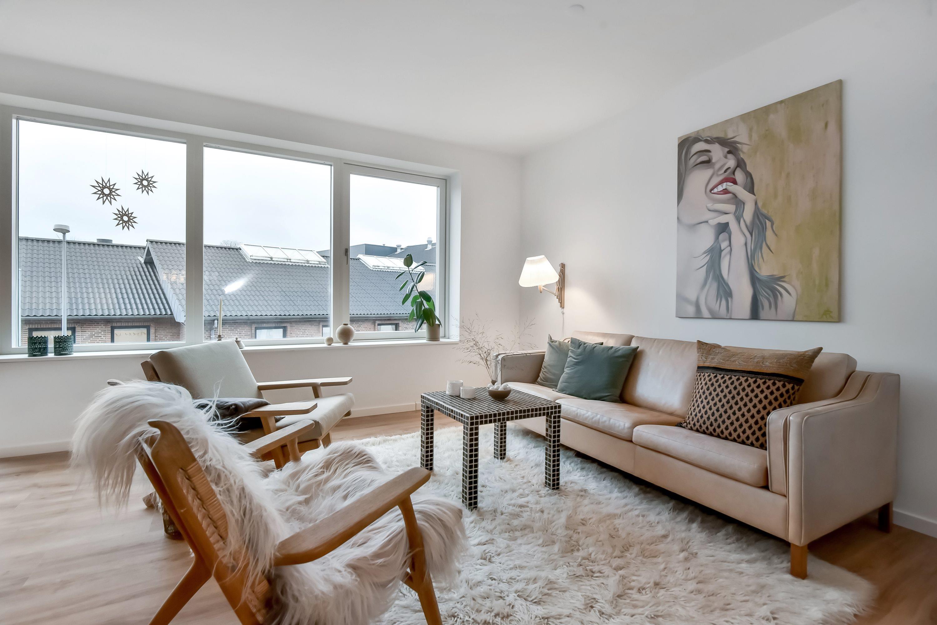 Velkommen i hjertet af Herning!😍 Dette moderne og bæredygtige byggeri ligger centralt, kun 2 minutters gang fra Vestre Anlæg, 3 minutter fra gågaden og 4 minutter i bil til motorvejen.Boligen strækker sig over 98 m² og byder på en privat skurplads samt parkering. Indretningen inkluderer en funktionel fordelingsgang, to lyse værelser og et rummeligt badeværelse med gulvvarme. I køkkenalrummet finder du et stilfuldt HTH-køkken med integrerede hvidevarer.Fra den brede franske altan kan du nyde aftensolen, mens mekanisk ventilation sikrer et sundt indeklima. Der er også en dejlig østvendt altangang, perfekt til morgenkaffen. Tag trappen eller elevatoren op til den 150 m² store fælles tagterrasse, som er indrettet med hyggelige møbler og plantekasser.Alle træmaterialer er FSC-certificeret, og bygningen har energimærke A2015, hvilket gør den til et grønt valg for fremtidige beboere.