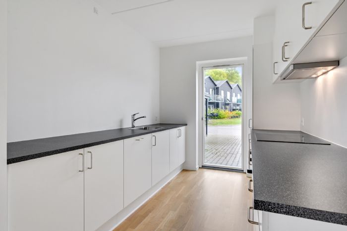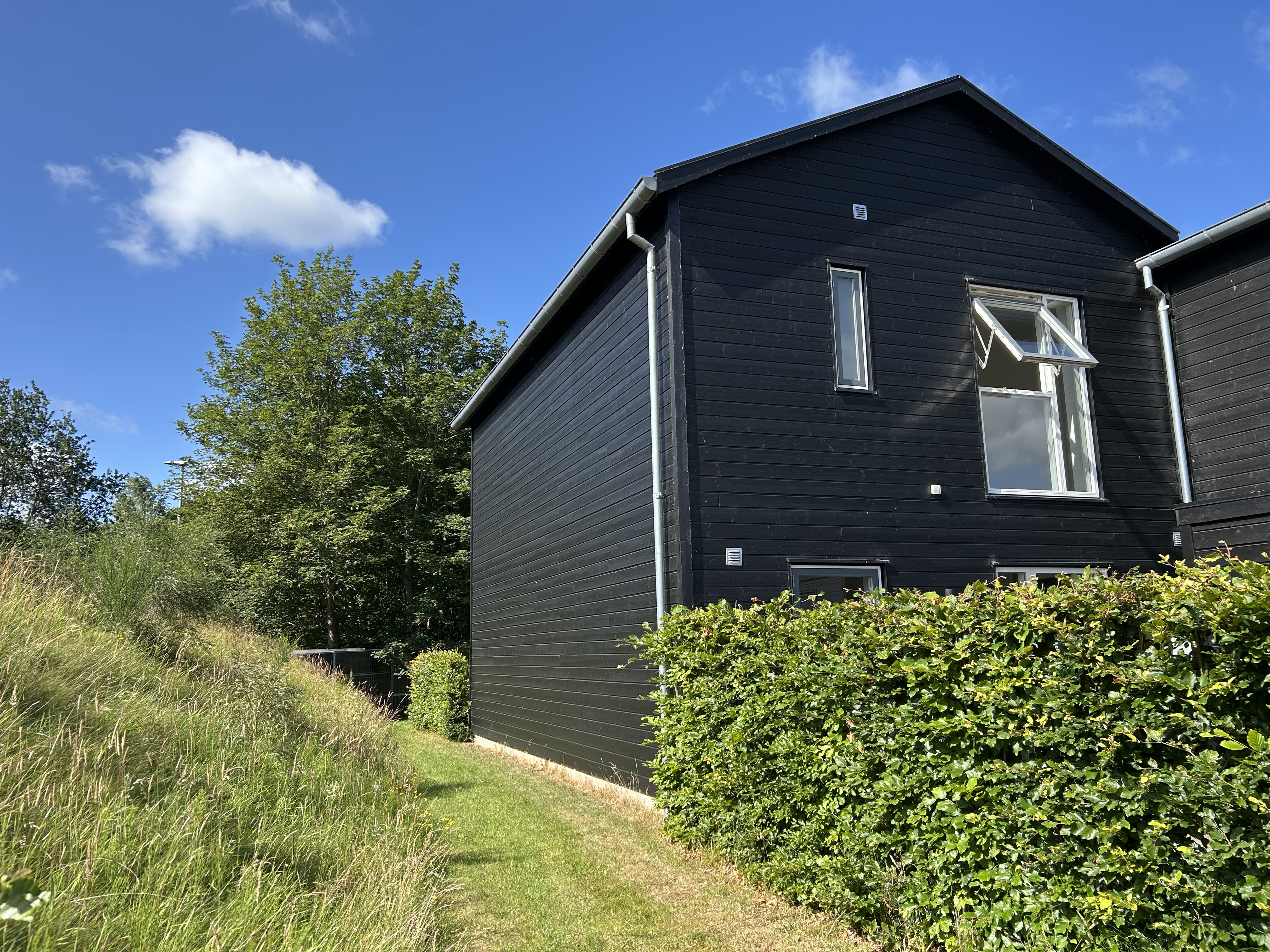 Her får du et lyst og rummeligt enderækkehus, i et område med godt naboskab med naboer i alle aldre. Husets terrasse vender mod vest, hvor eftermiddags- og aftensolen kan nydes ugeneret med udsigt til naturareal.