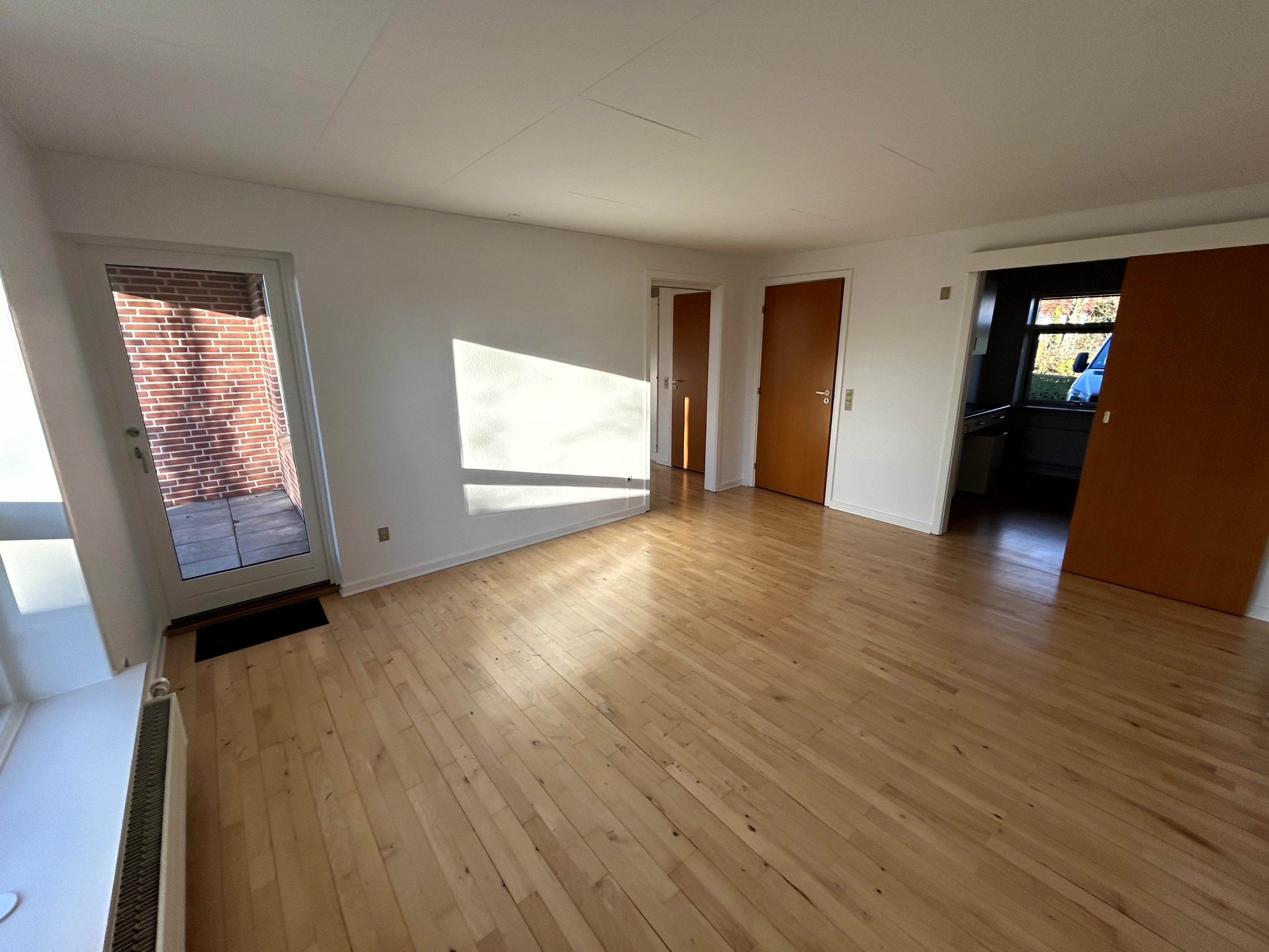 Huset ligger i et ældrevenlig boligområde, i rolige omgivelser og med gå afstand til Brugsen. Det er en ét plans bolig og kan tilpasses kørestolsbrugere. Der er en lille (overdækket) terrasse, både foran og bagved huset og tilmed et lille redskabsskur. Fra husets entré, er der adgang til badeværelse, soveværelse, og til stuen. Fra stuen, kan man tilgå både soveværelset og et udmærket køkken, med en fornuftig størrelse. I badeværelset er der gulvvarme og har plads til en vaskemaskine.