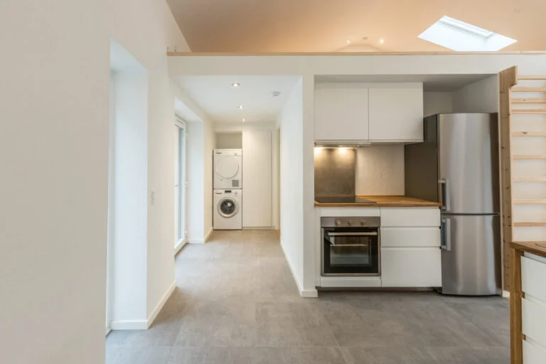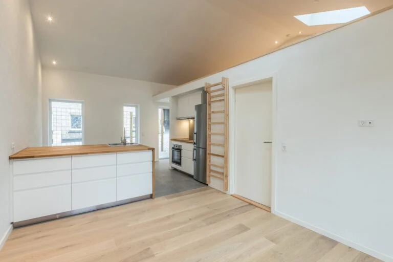 • Åbent køkken med loft til kip med opvaskemaskine