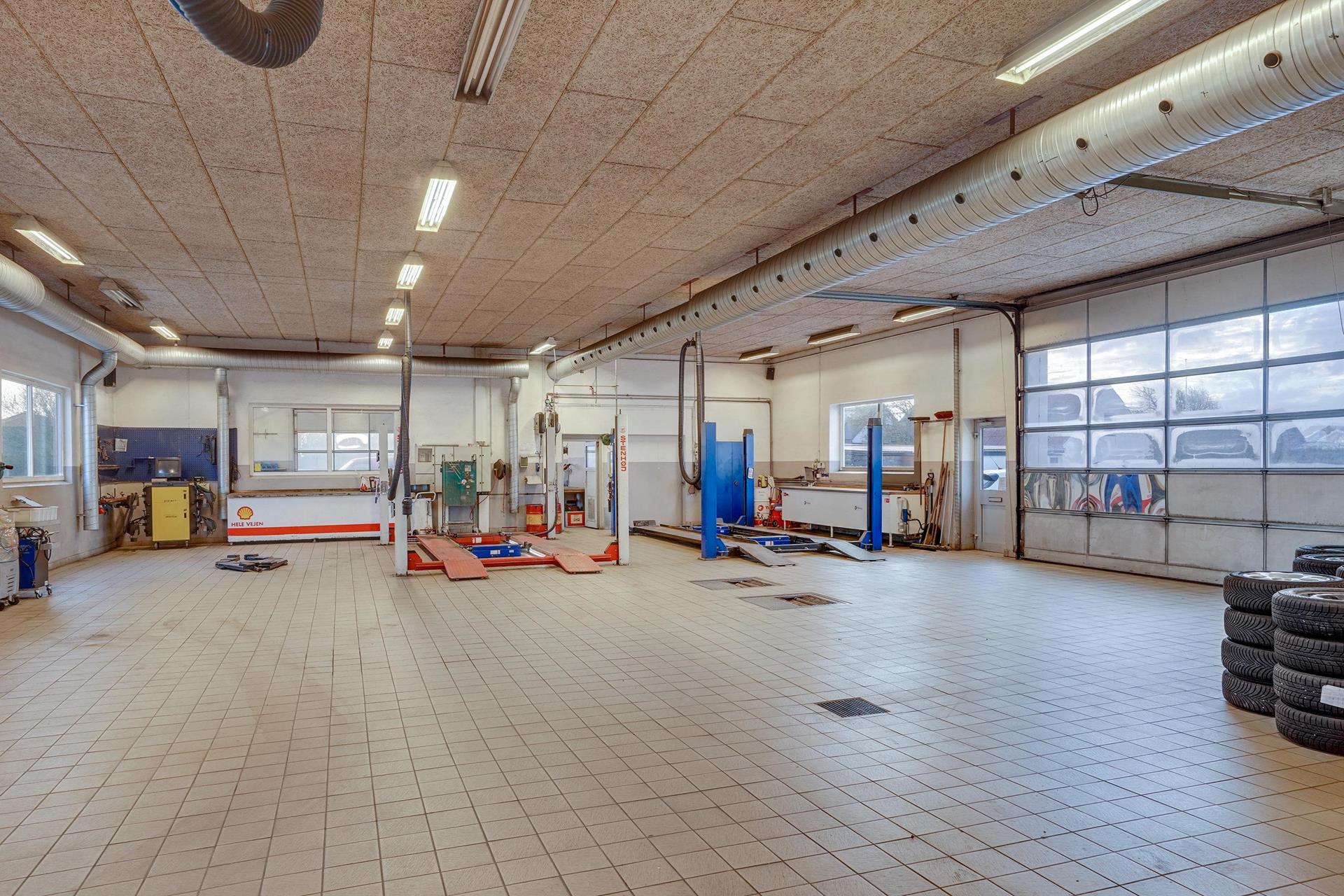 Lejemålet er indrettet med god loftshøjde, troldtektloft, kørefast klinkegulv, to autolifte og mindre kontor/lager. Lejemålet er særdeles oplagt til brug for autoværksted, ligesom det vil kunne anvendes til fx synshal, bilklargøring eller showroom til-/ifm. salgsvirksomhed.