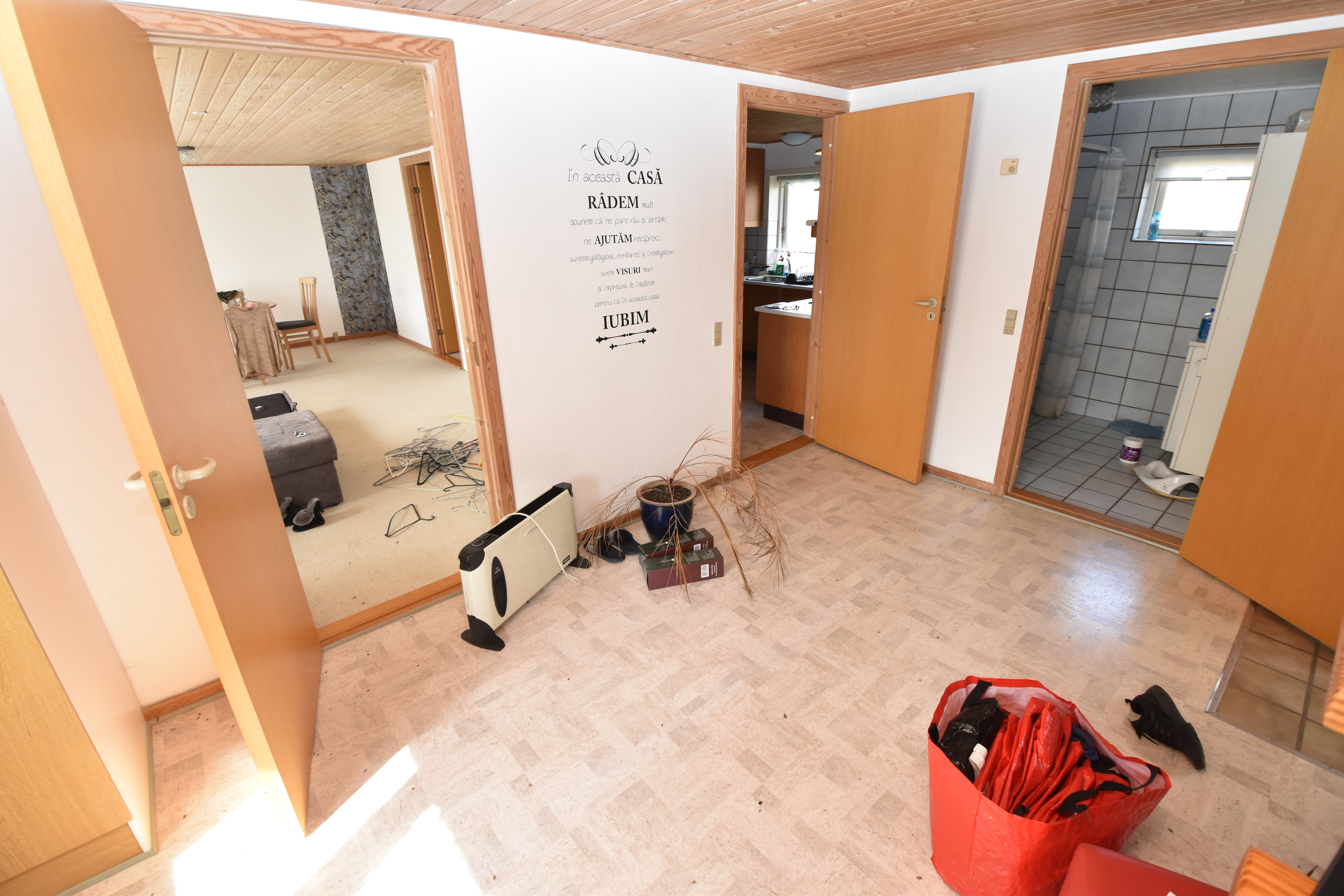 Det første der møder dig er en lys og venlig entre som giver dig adgang til køkken/stor stue og teknikrum.I forlængelse af stuen er der et værelse.