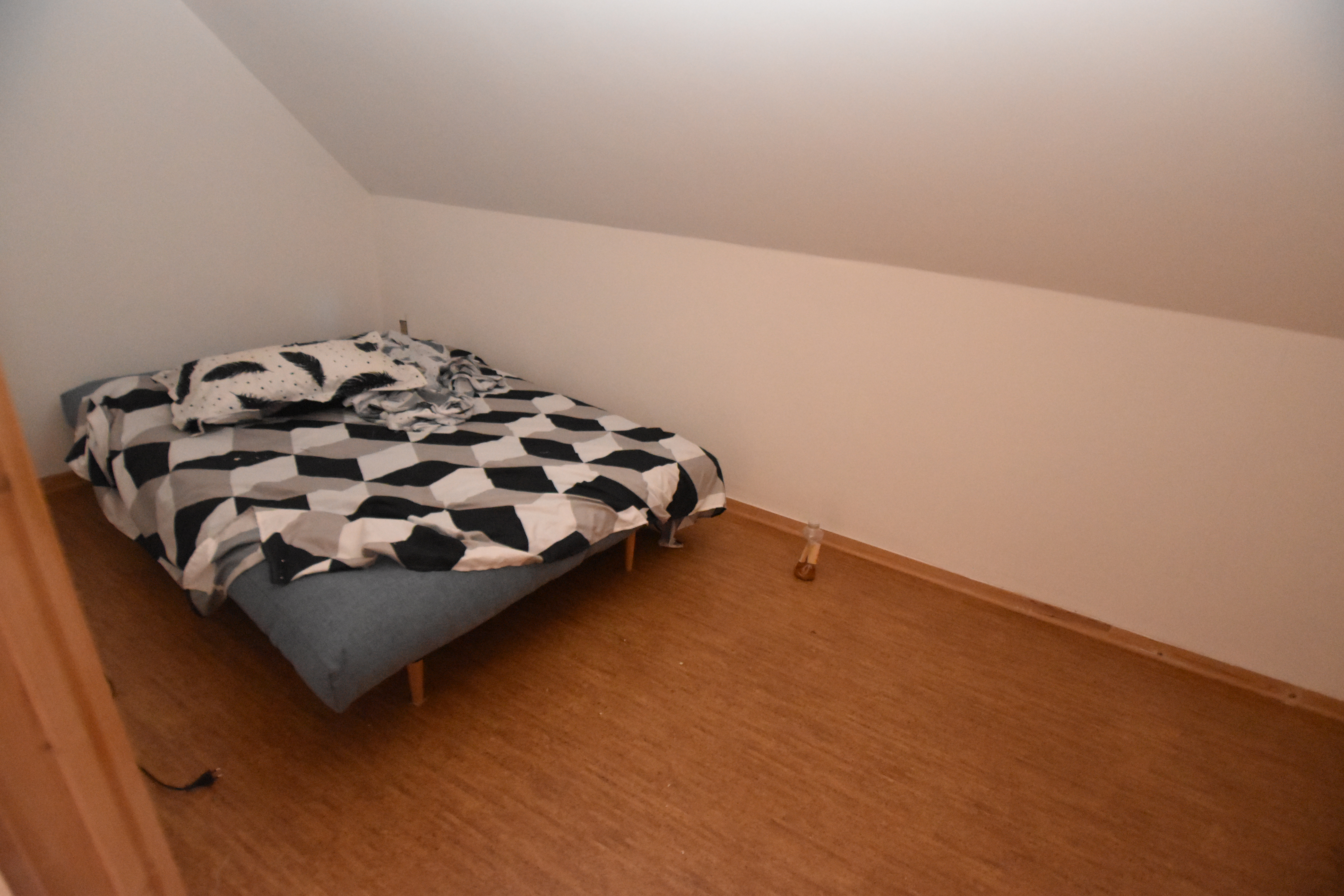 På husets første sal er der to rummelige værelser.Huset er incl. nye vinduer og der er opsat nyt pillefyr.