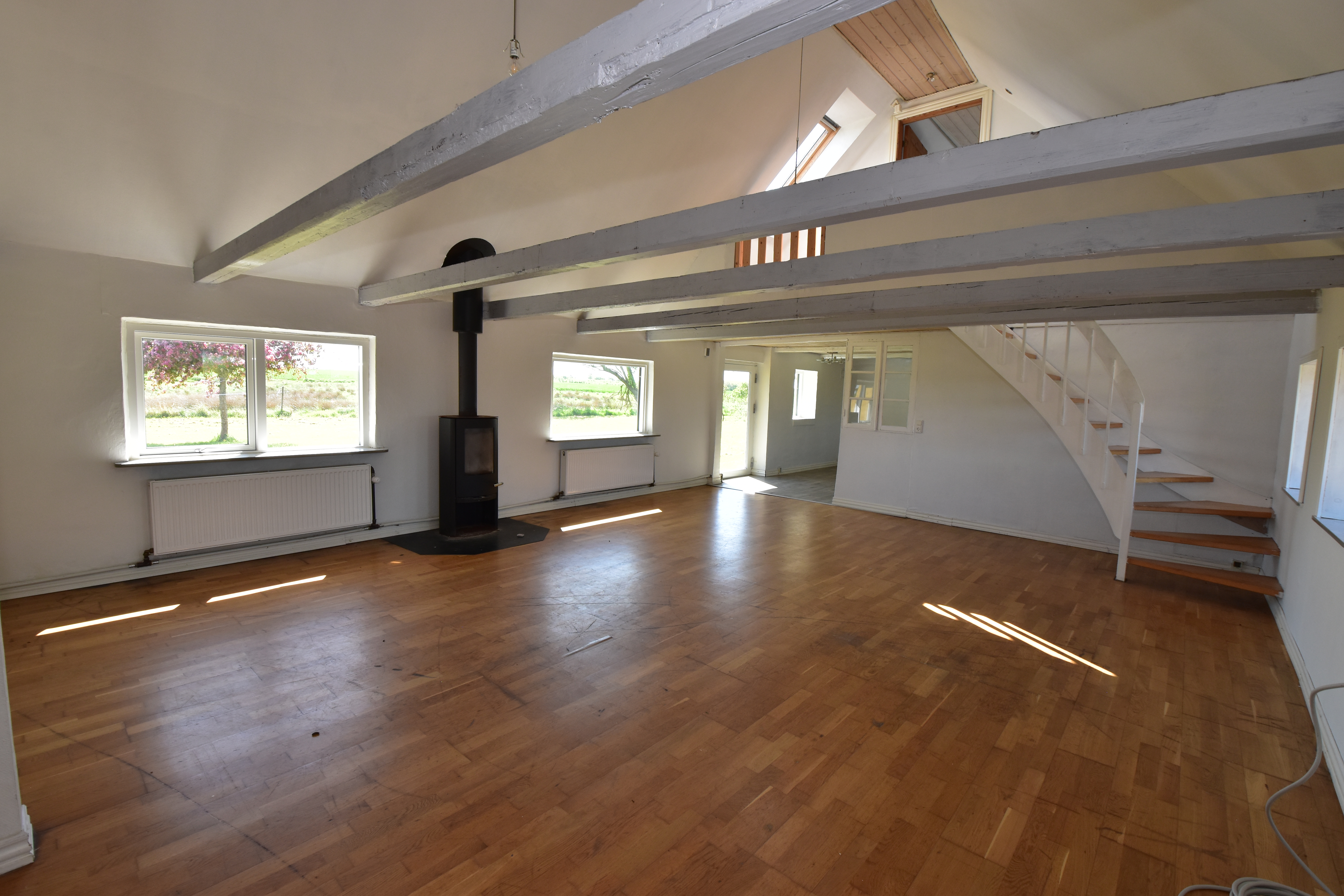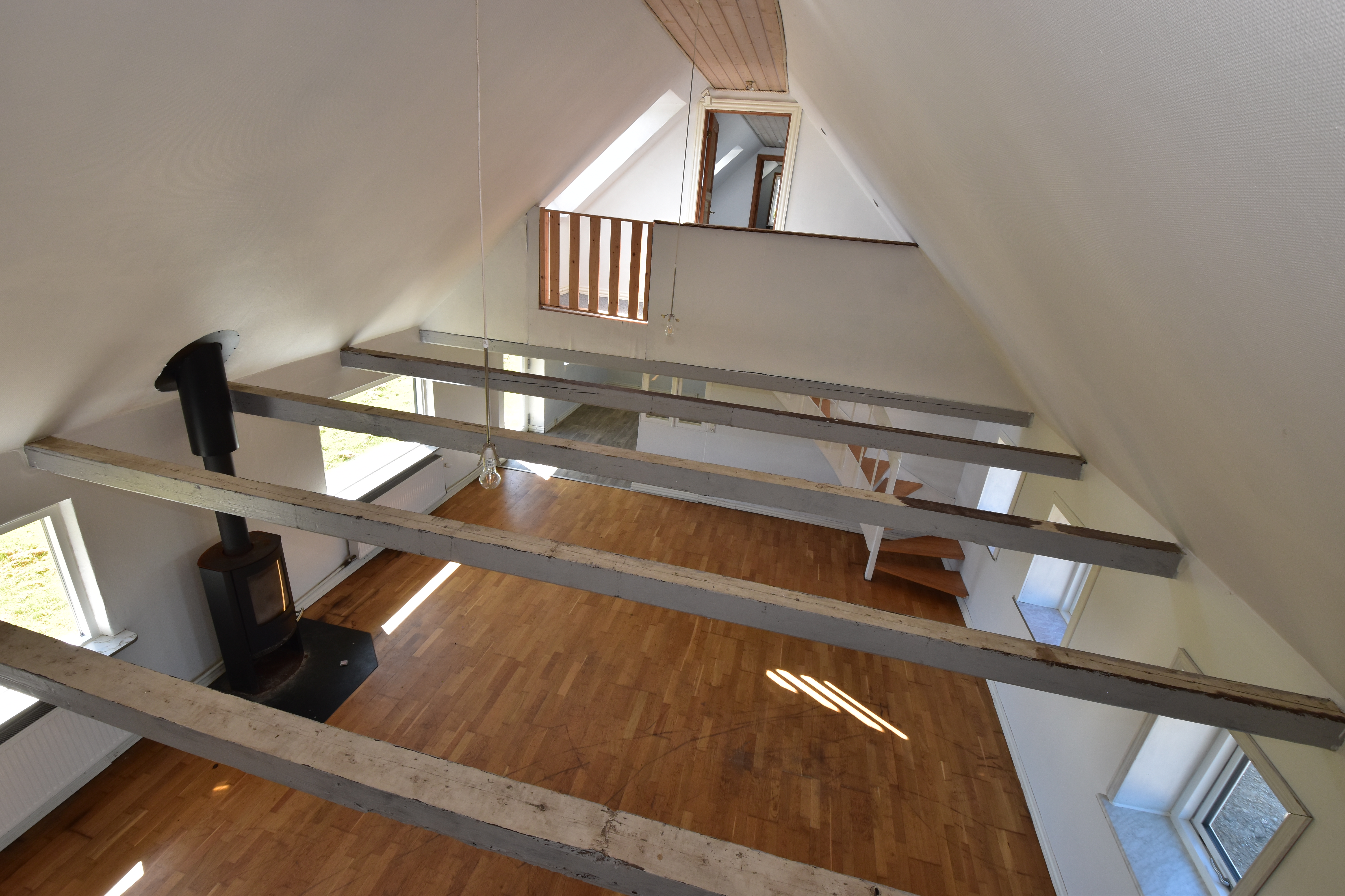 Der er stor stue med loft i kip.