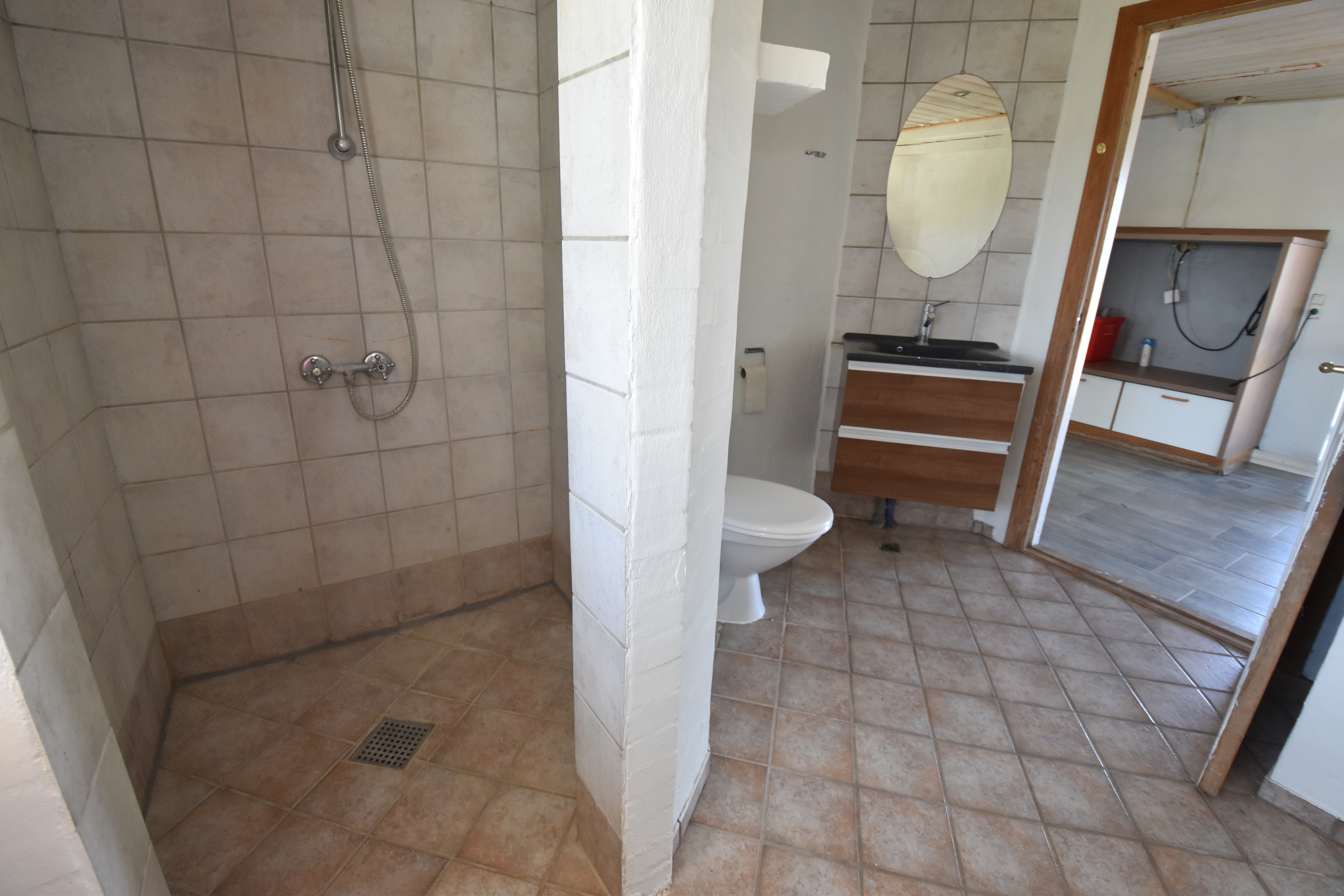 Huset er indrette med stor entre, hvorfra der er adgang til gavlværelse, badeværelse med toilet og køkken alrum.