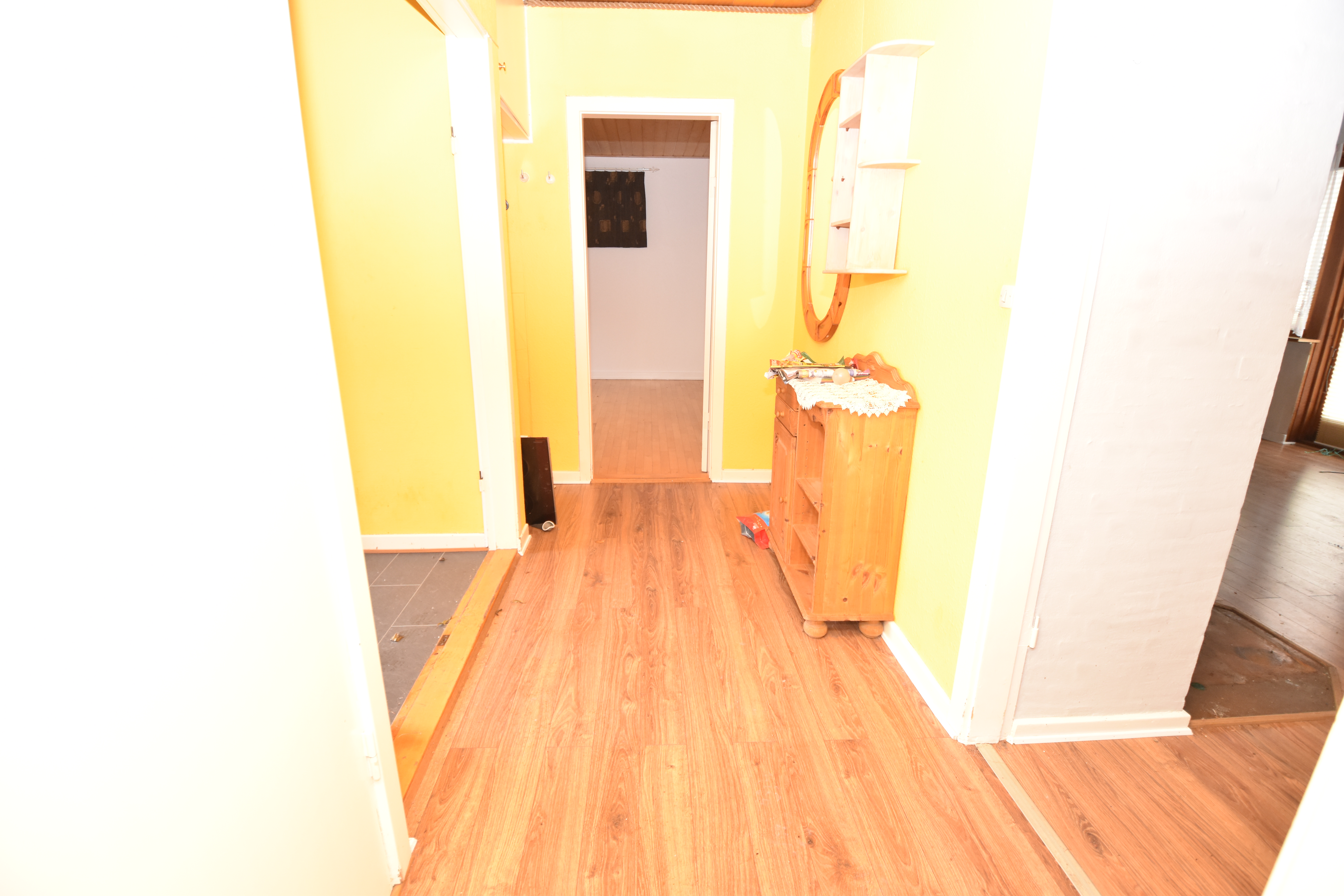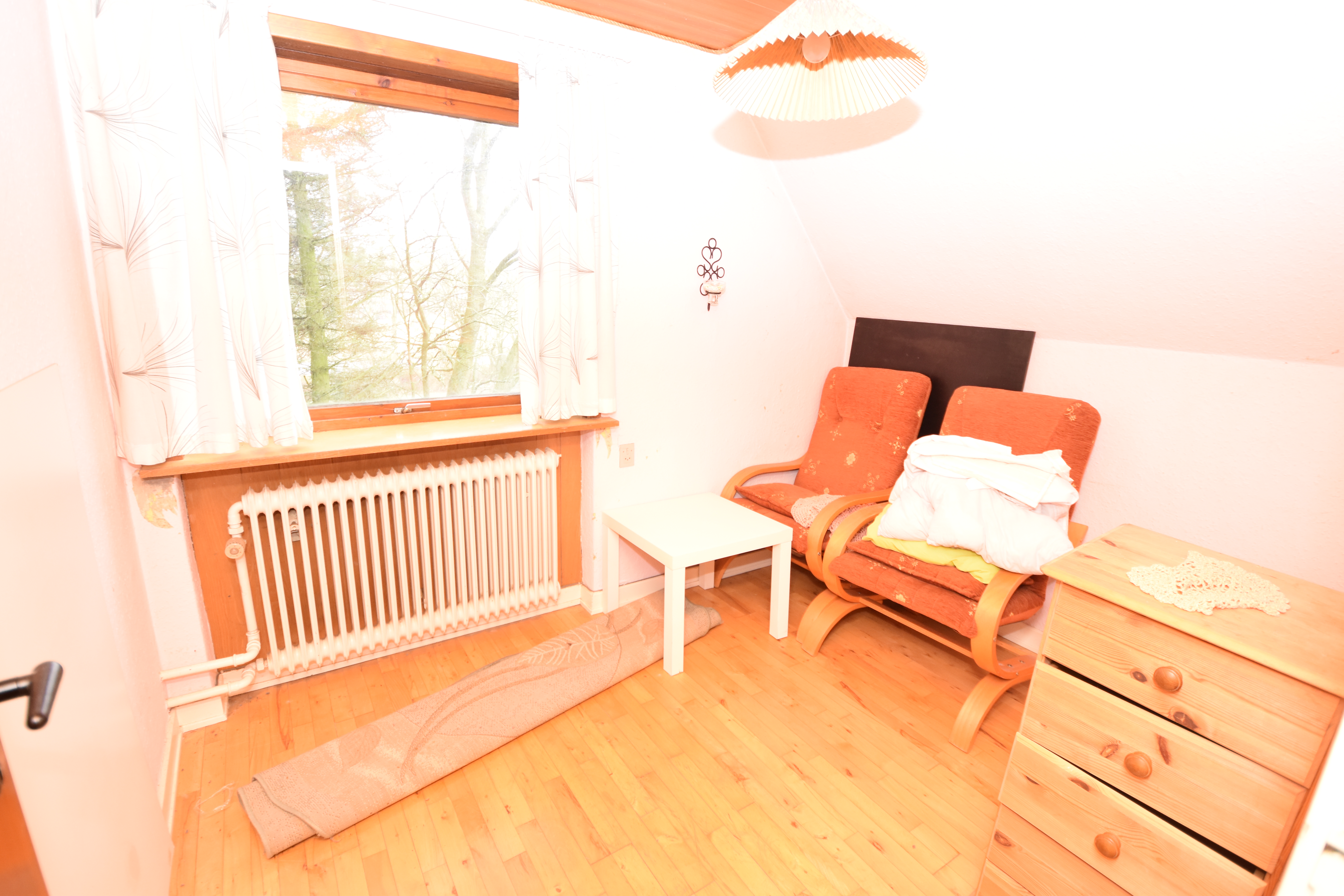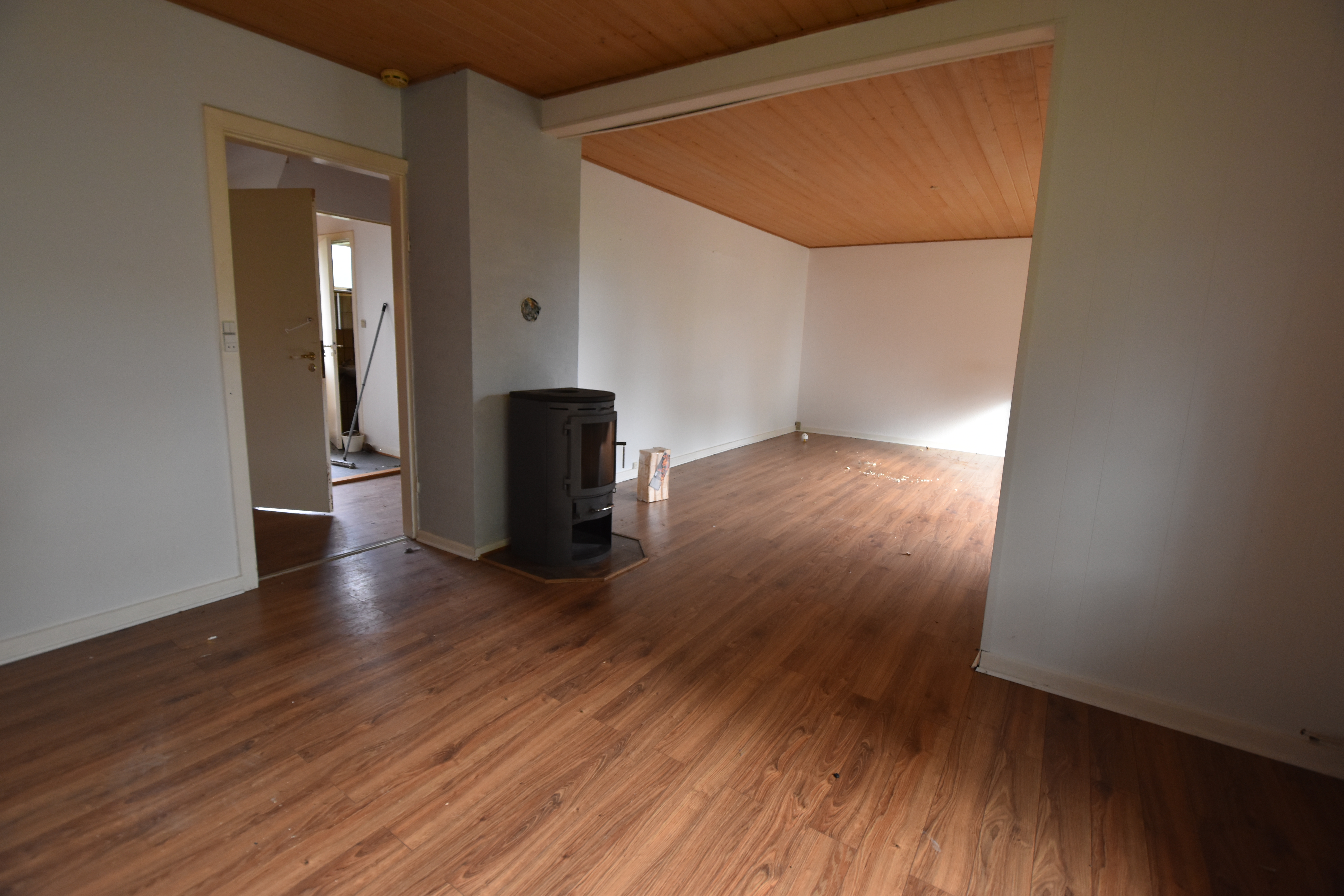 På husets 1. sal er der 4 værelser, hvor af et af værelserne er meget stort.