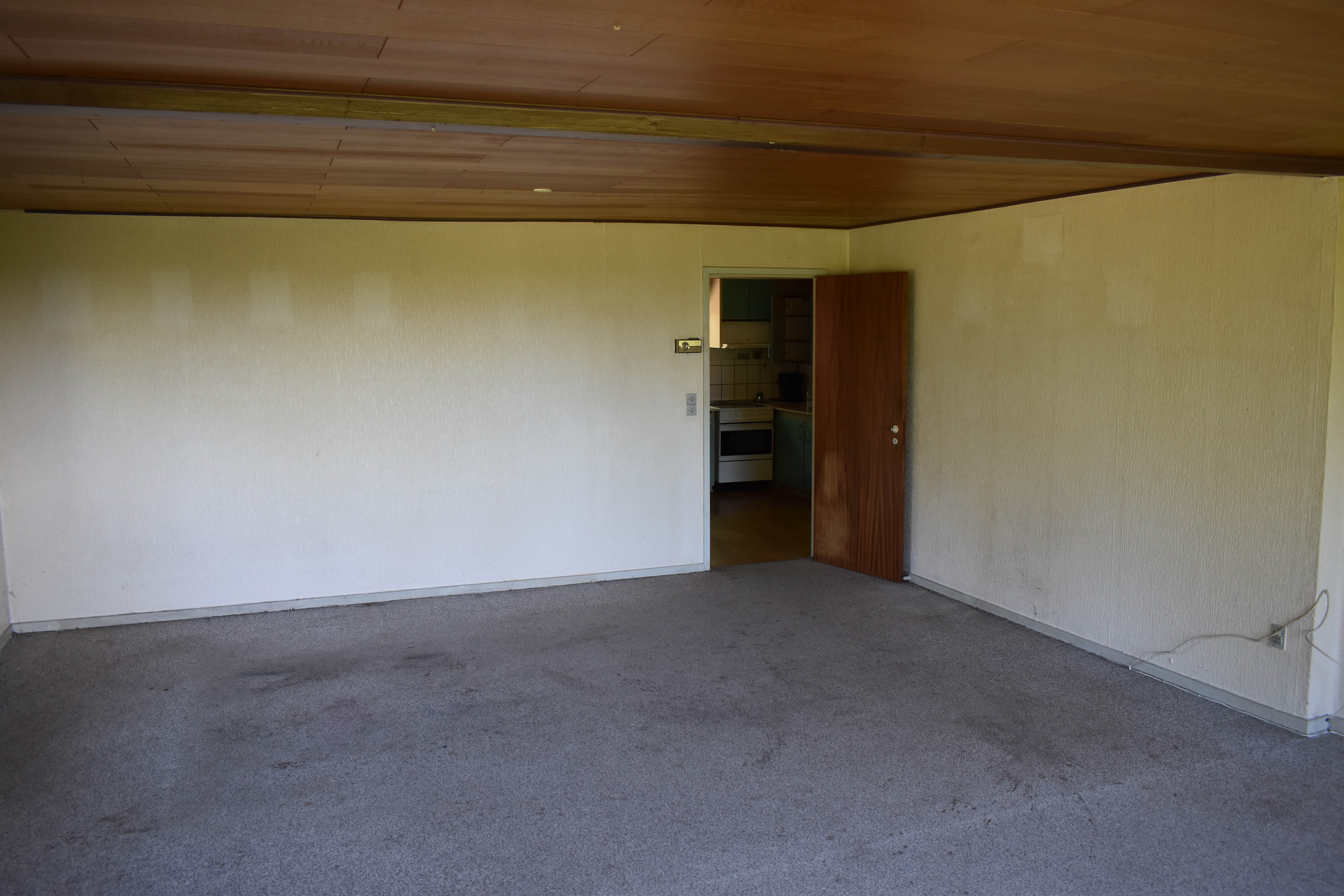 Ejendommen er indrettet med større bryggers med plads til vaskemaskine og tørretumbler, værelse, badeværelse, køkken med spiseplads, soveværelse og en dejlig stor stue med stort vinduesparti med udsigt til marker. Fra stuen er der udgang til en havestue, som forlænger sommeren.
